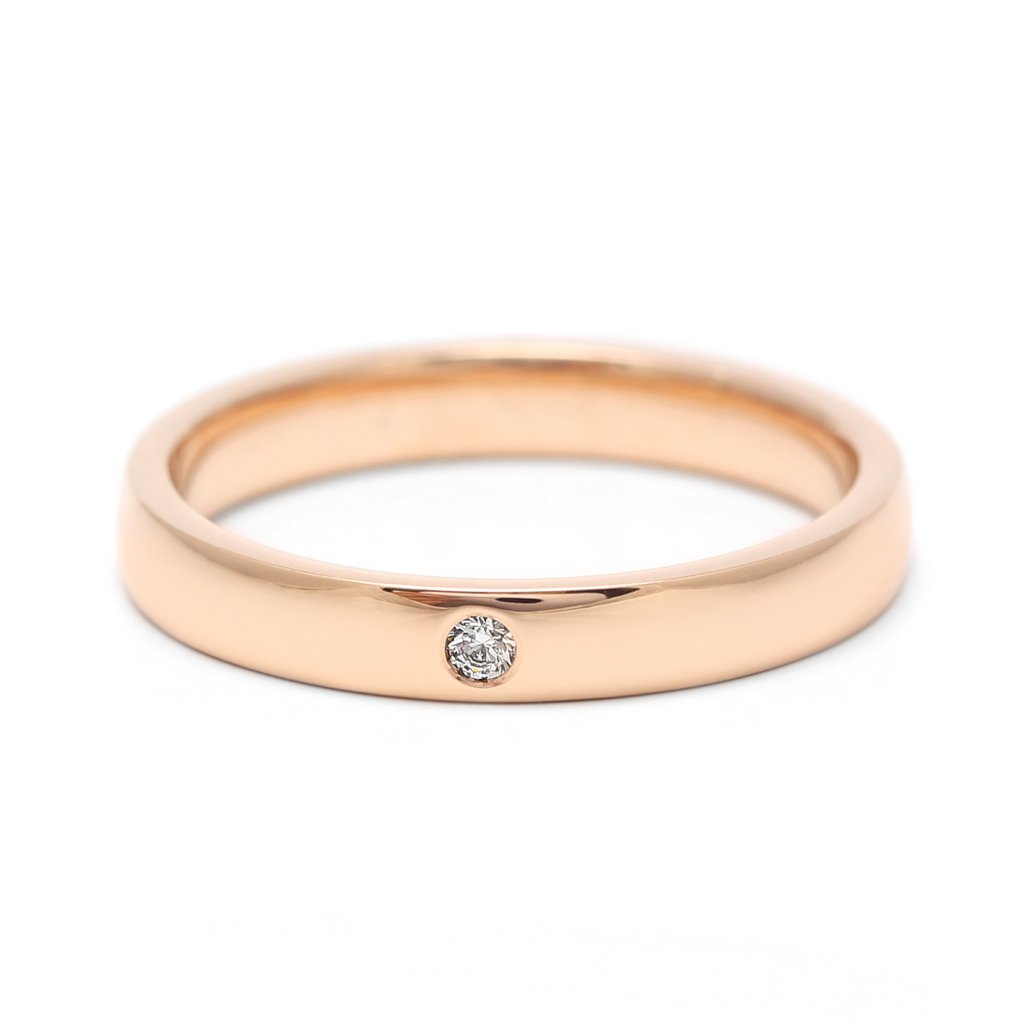 Dámský snubní prsten z růžového zlata s jedním jemně třpytivým diamantem. Elegantní, romantický a minimalistický šperk pro každodenní nošení.