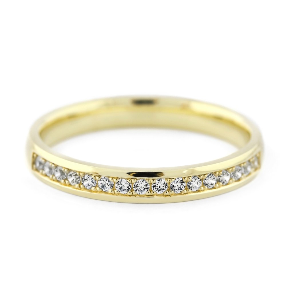 Dámský snubní prsten ze žlutého zlata s linií dvaceti diamantů. Hřejivý, slavnostní a ručně zhotovený šperk.