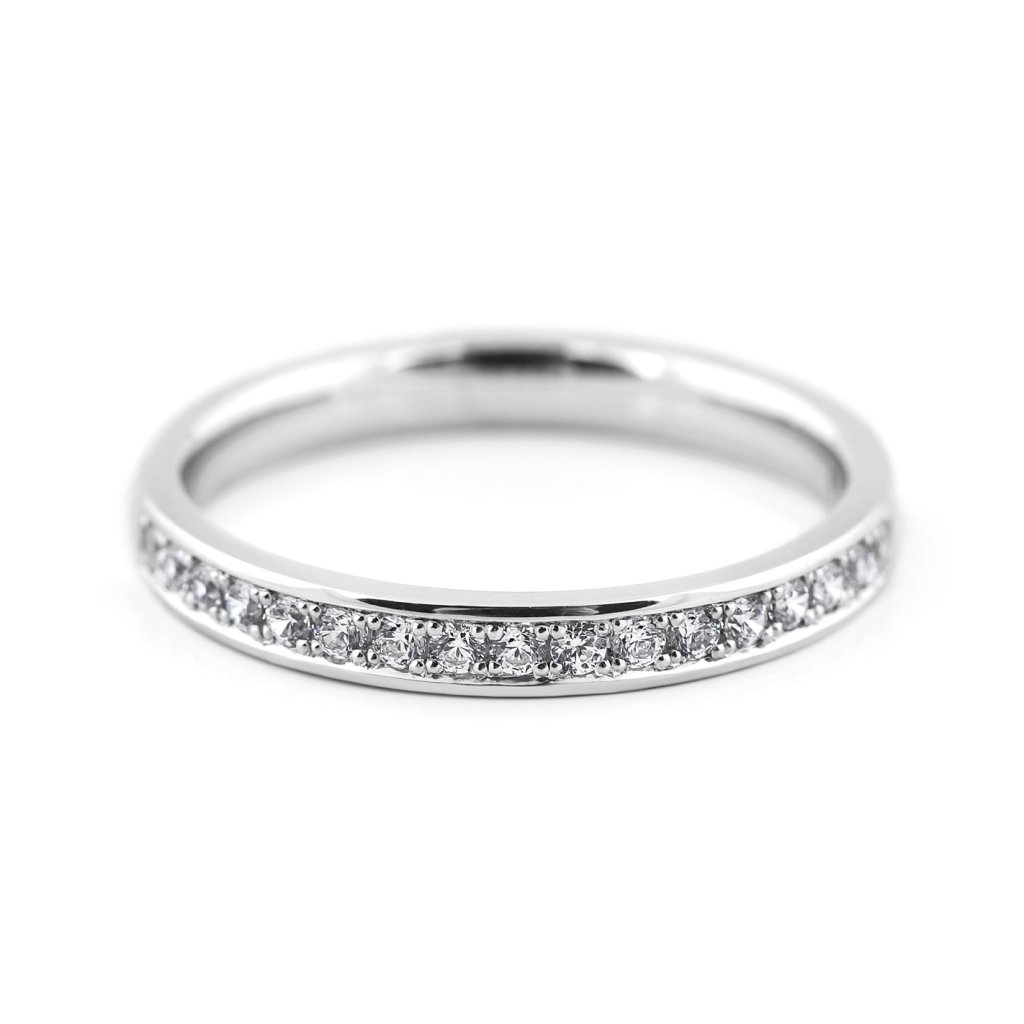 Tento dámský snubní prsten z bílého zlata je navržen pro ženy, které touží po jemném, ale výrazném šperku s dokonalým třpytem. Do elegantního pásku je zasazeno 20 diamantů o velikosti 1,4 mm, které vytvářejí souvislou linii světla. Precizní osazení v kombinaci s lesklým povrchem dodává prstenu luxusní charakter a nadčasovou eleganci.