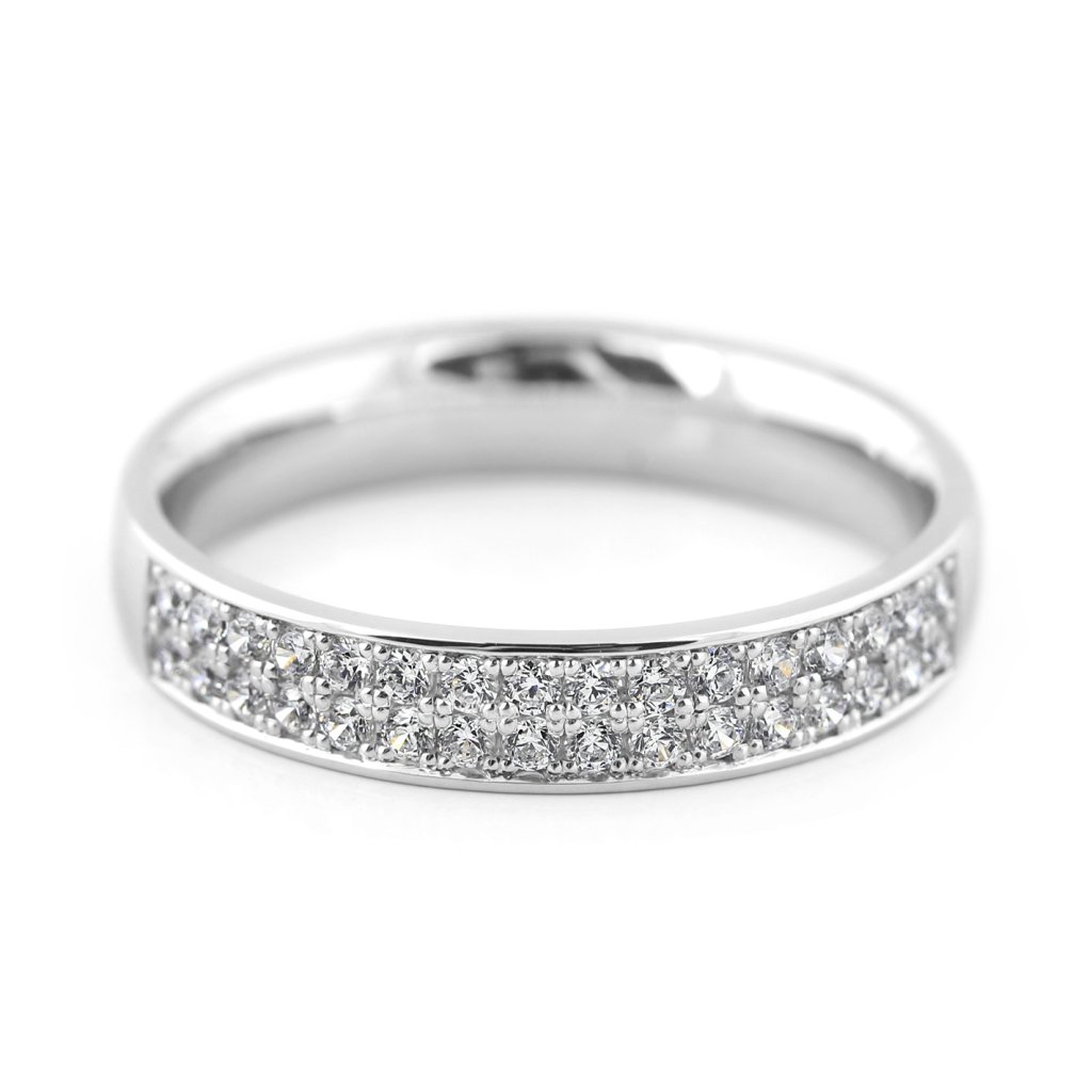 Dámský snubní prsten z bílého zlata s 32 diamanty. Třpytivý, luxusní a ručně zhotovený šperk s trojitou linií světla.