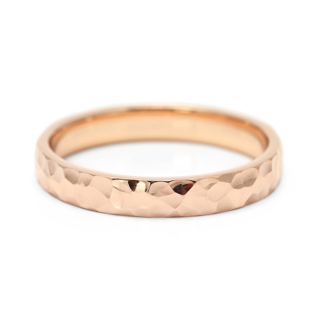 Tento dámský snubní prsten z růžového zlata v tepáném provedení je ideální volbou pro ženy, které hledají šperk s originální texturou, jemnou elegancí a ručním charakterem. Tepaná struktura vytváří jedinečný efekt odlesků, díky kterému prsten působí živě, moderně a přitom stále velmi jemně. Růžové zlato dodává celému designu hřejivý, romantický nádech a podtrhuje jeho ženskost.