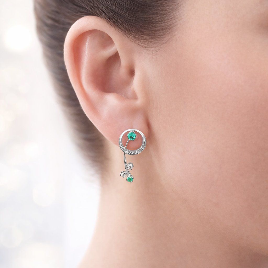 Ručně vyrobené náušnice z bílého zlata kombinují vzácné smaragdy z Kolumbie a třpytivé diamanty. Šperk, který podtrhne jedinečnost a sofistikovanou eleganci.