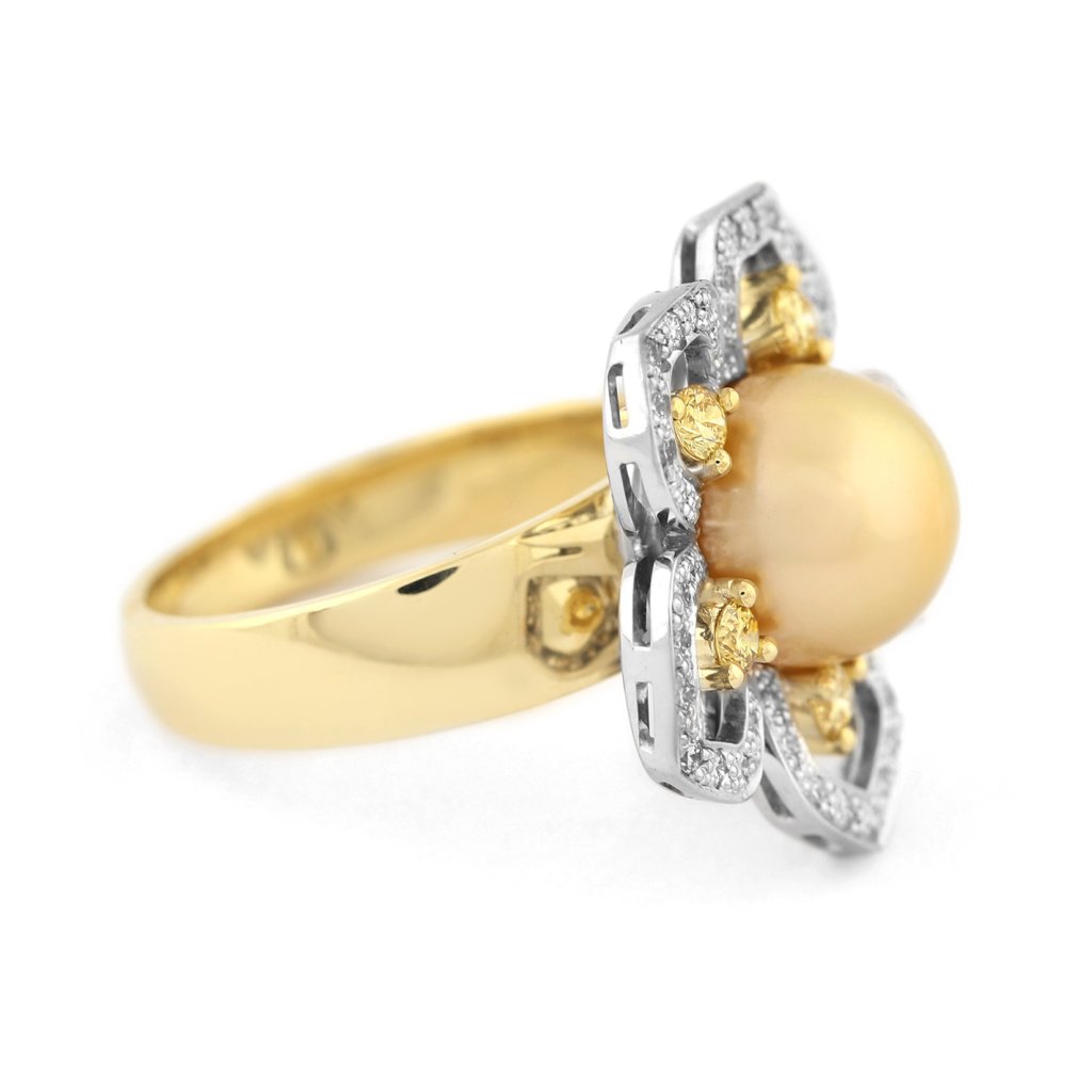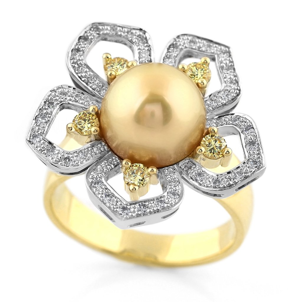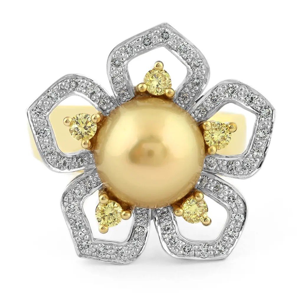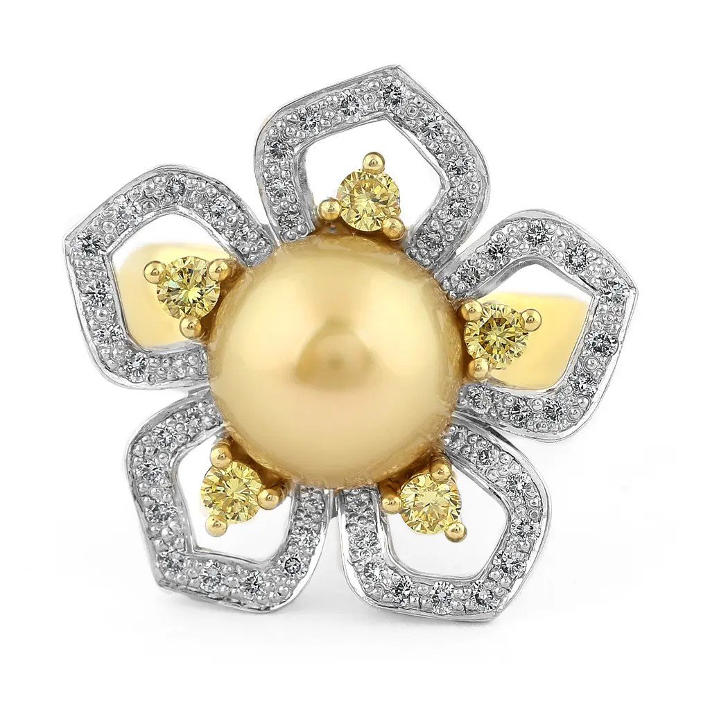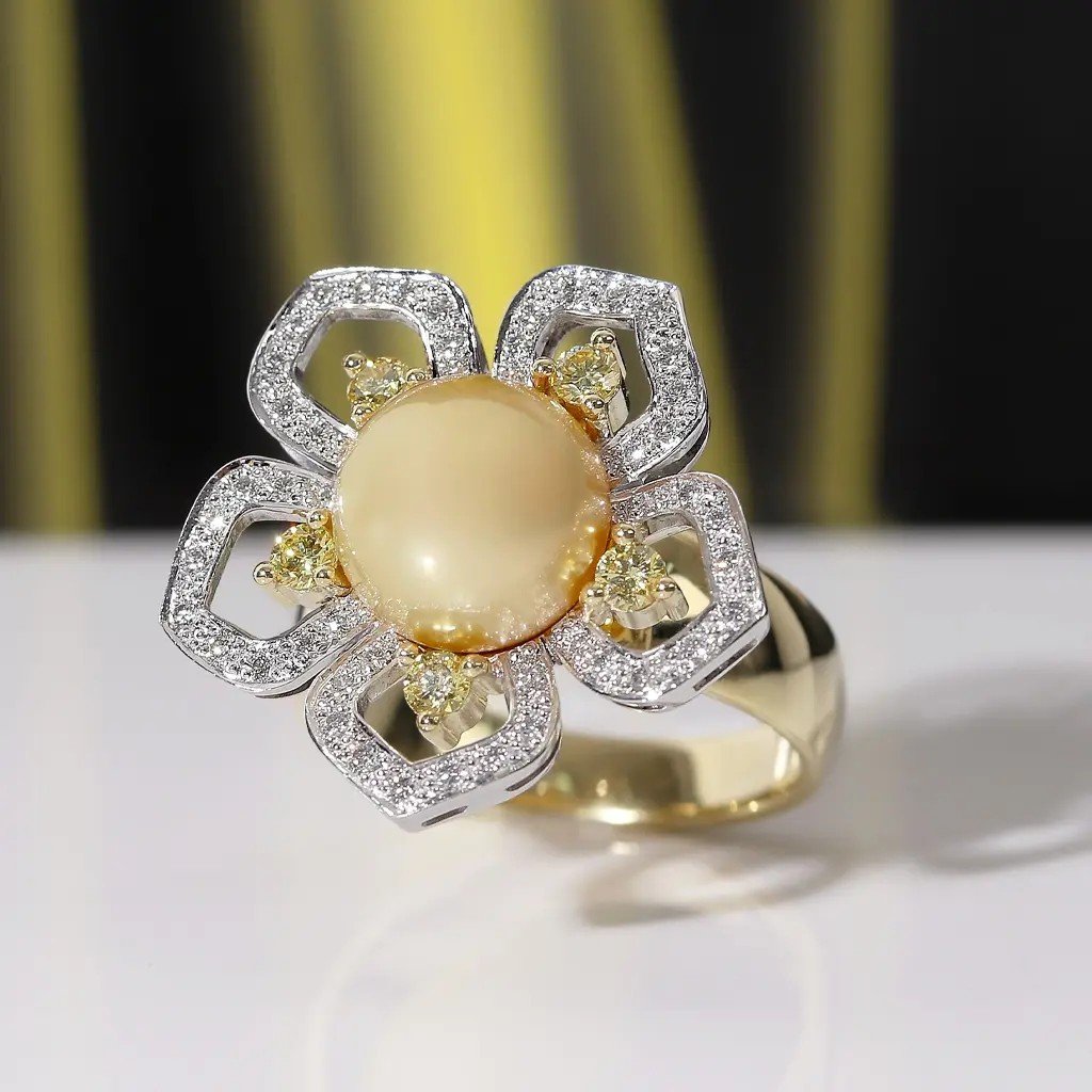 Exkluzivní prsten ve tvaru květu s diamanty a mořskou perlou Tahiti v kombinaci žlutého a bílého zlata, vel. 55