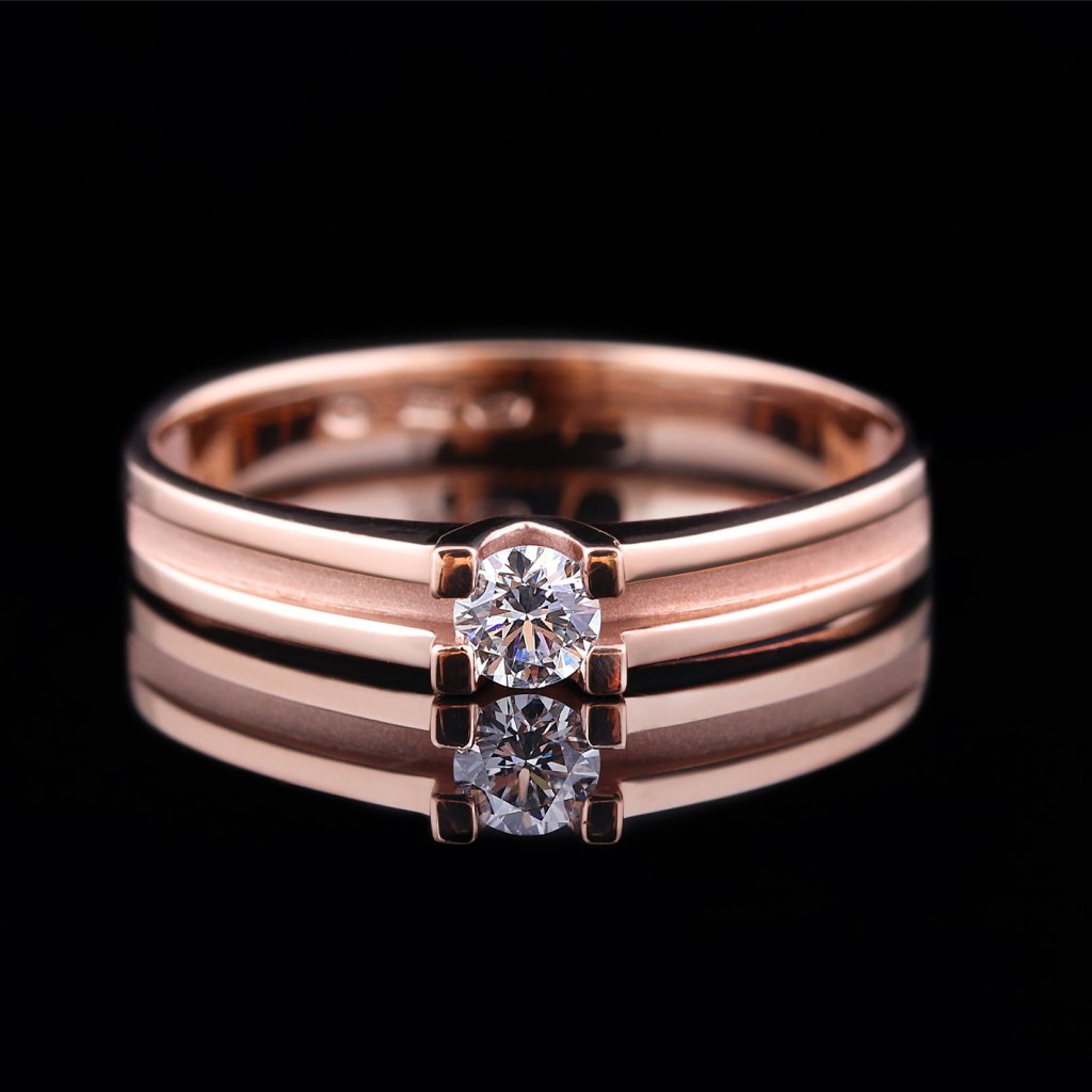 Nadčasový prsten z růžového zlata s diamantem, vel. 52