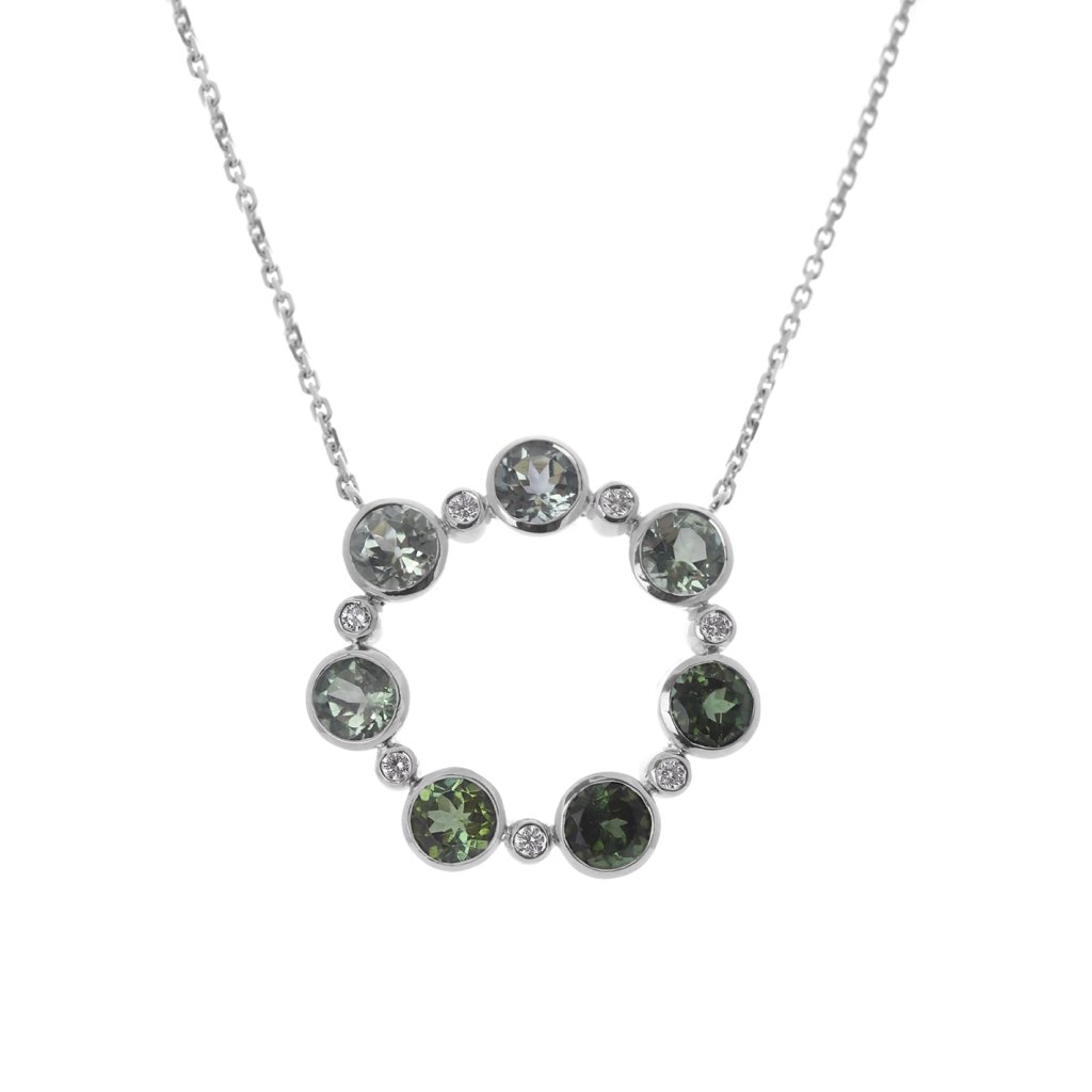 Náhrdelník exkluzivní kruhová elegance s přírodními turmalíny a diamanty