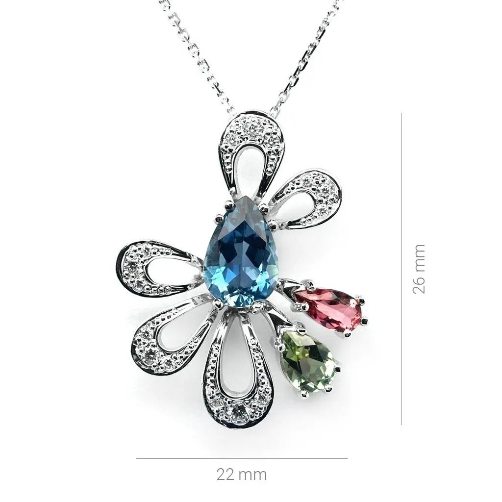 Náhrdelník s akvamarínem, turmalíny a diamanty z bílého zlata