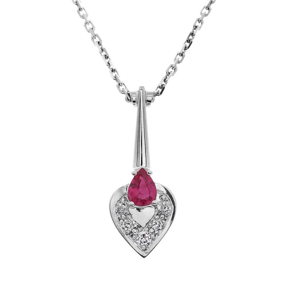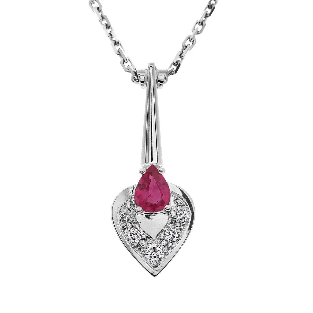 Náhrdelník s rubínem a diamanty z bílého zlata