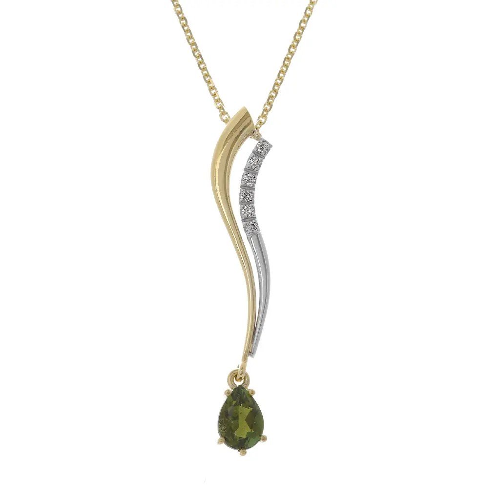 Náhrdelník s turmalínem a diamanty v kombinaci žlutého a bílého zlata