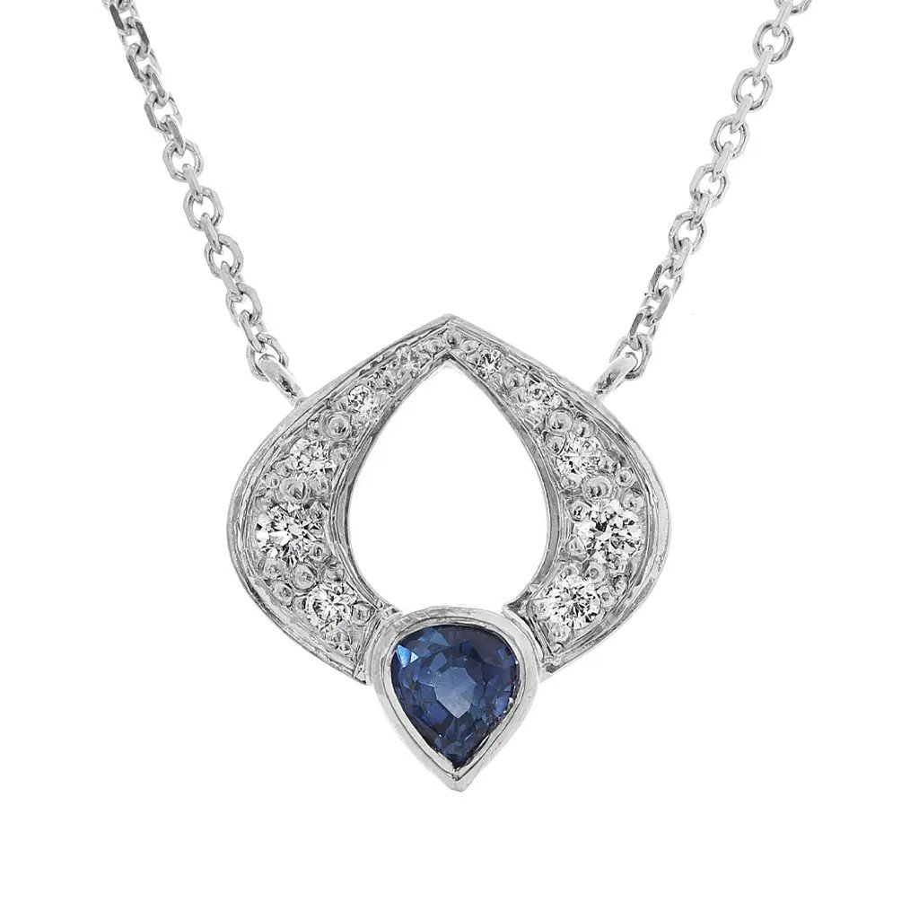 Náhrdelník se safírem a diamanty z bílého zlata