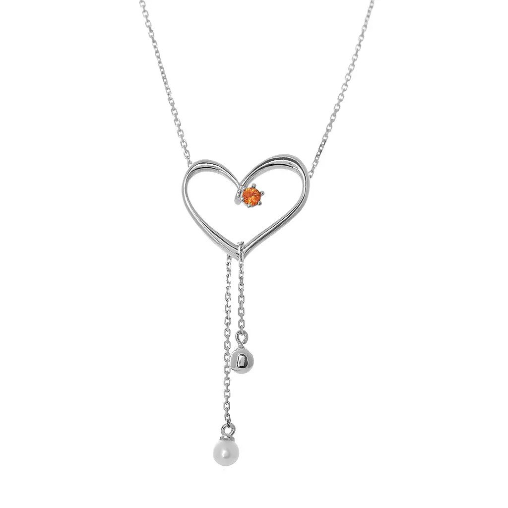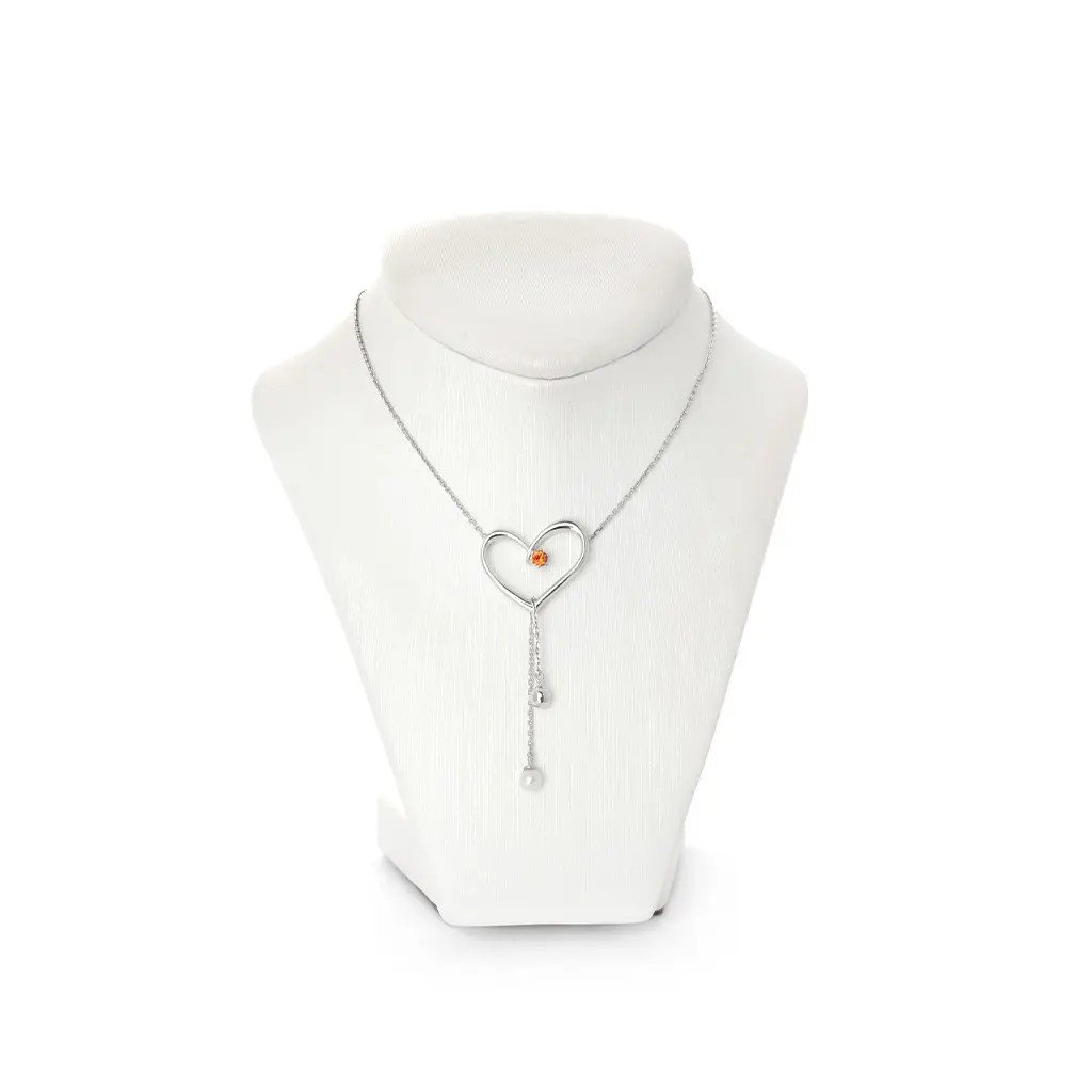 Náhrdelník ve tvaru srdce s oranžovým safírem a sladkovodní perlou z bílého zlata