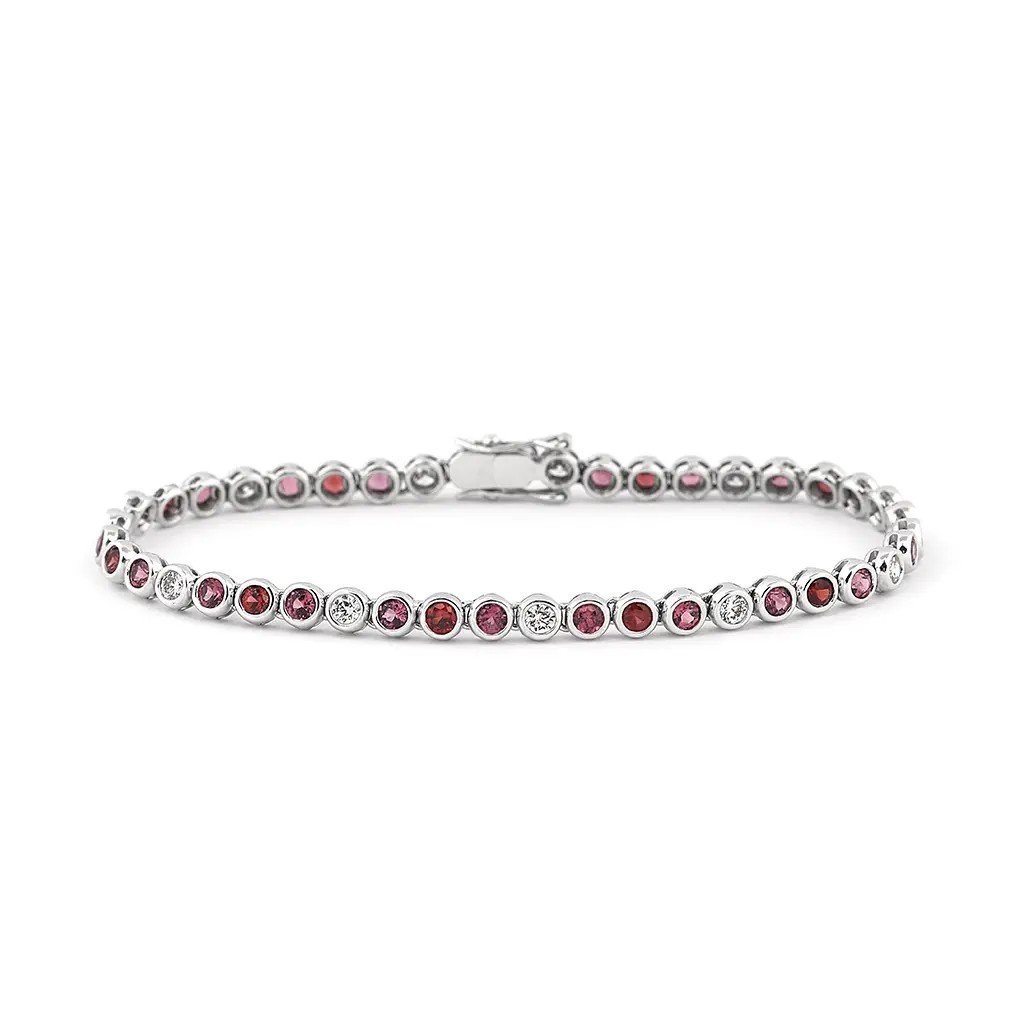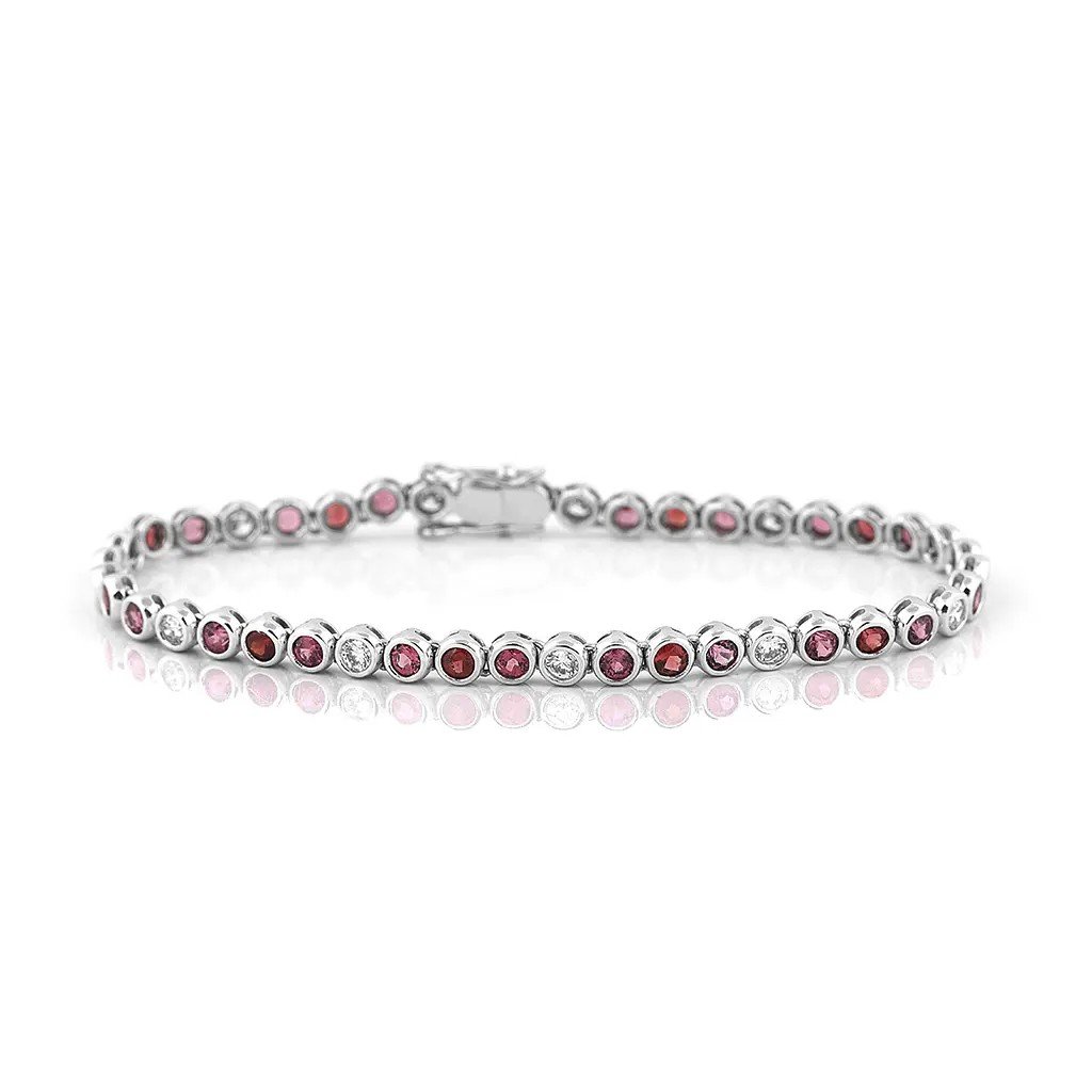 Luxusní náramek z bílého zlata s diamanty a granáty. Výjimečný ručně vyráběný šperk, který spojuje eleganci, originalitu a nadčasovou krásu.
