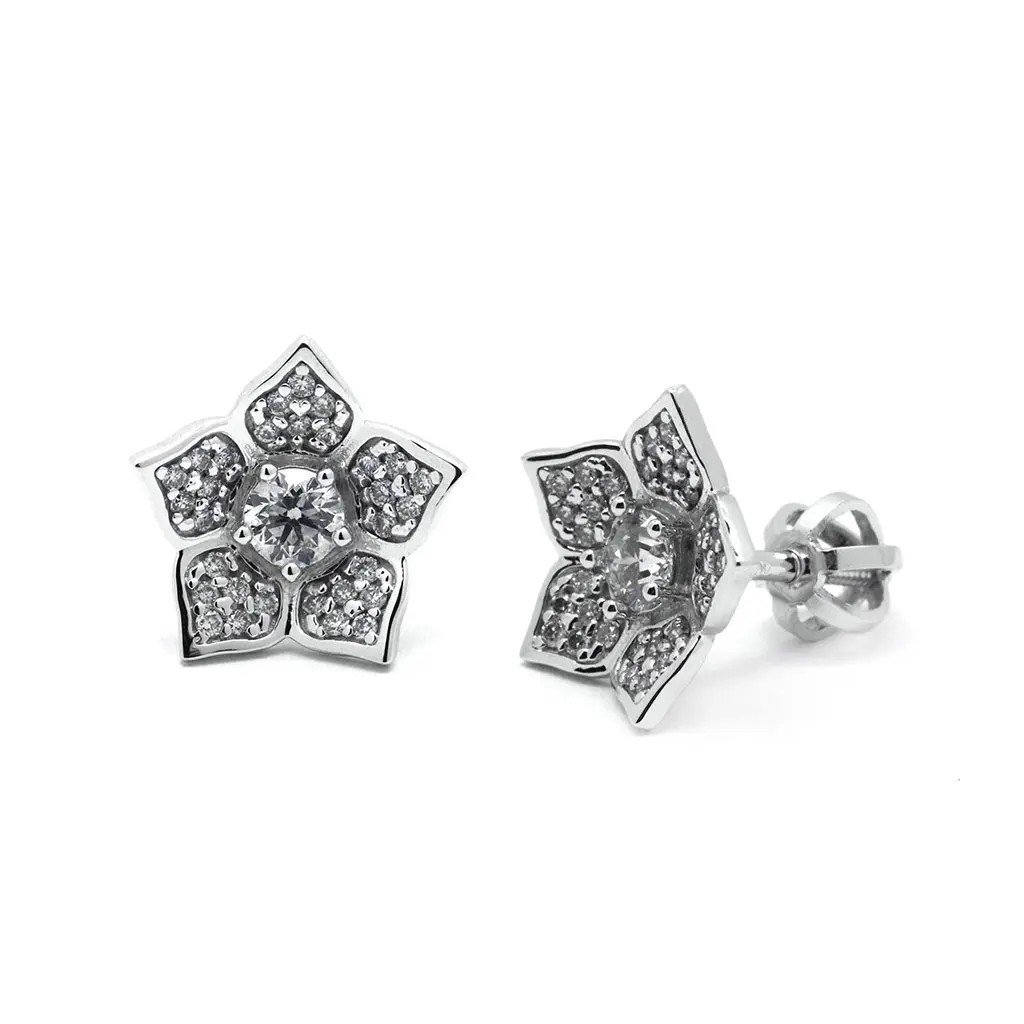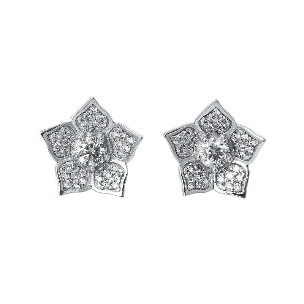 Náušnice květy s diamanty z bílého zlata