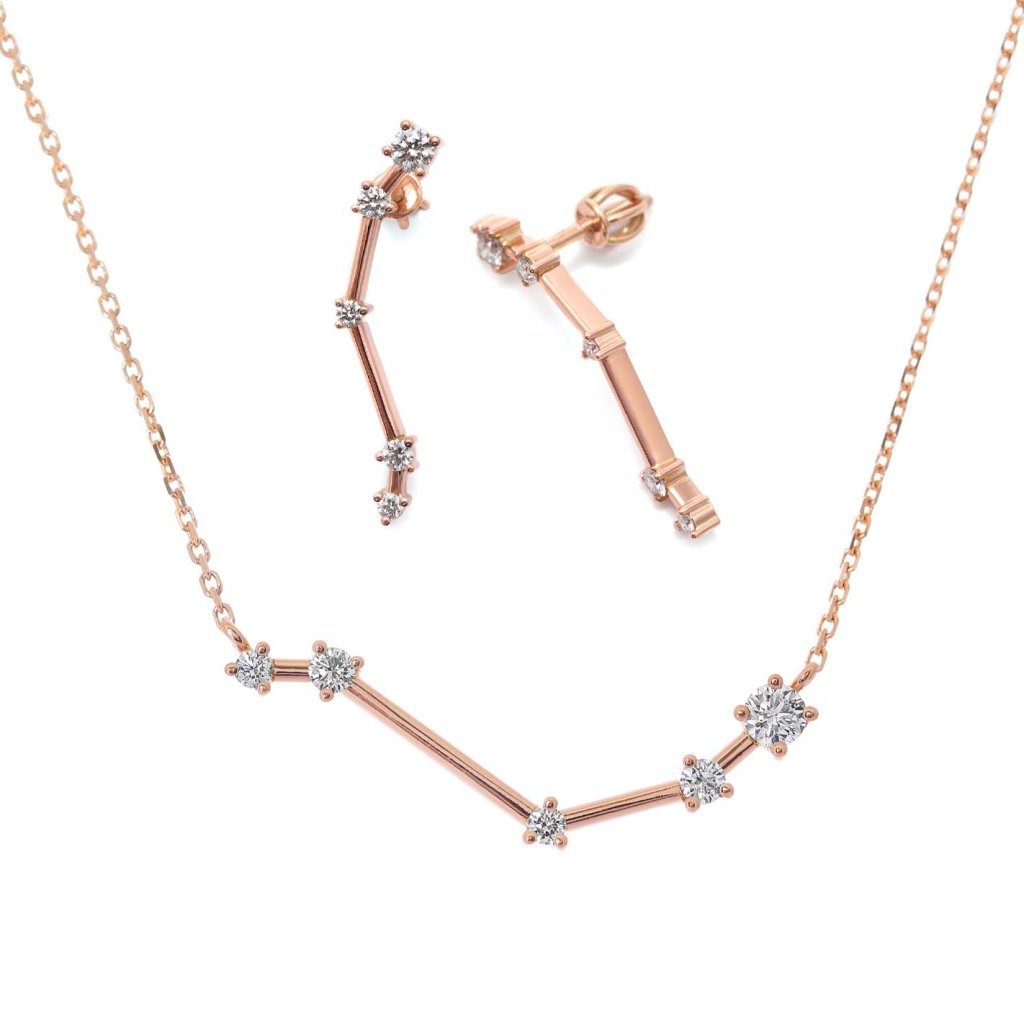 Nechte se okouzlit šperkem z růžového zlata, který na uchu vytváří jemnou linii připomínající zářící souhvězdí. Členitá struktura těchto náušnic umožňuje diamantům odrážet světlo z mnoha úhlů, což vytváří dynamický a velmi atraktivní efekt. Tento šperk je navržen pro dámu, která dává přednost unikátním formám a chce vlastnit klenot, který je moderní, hravý a zároveň si zachovává noblesu drahých materiálů.