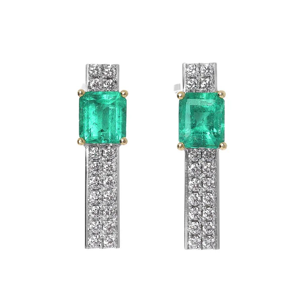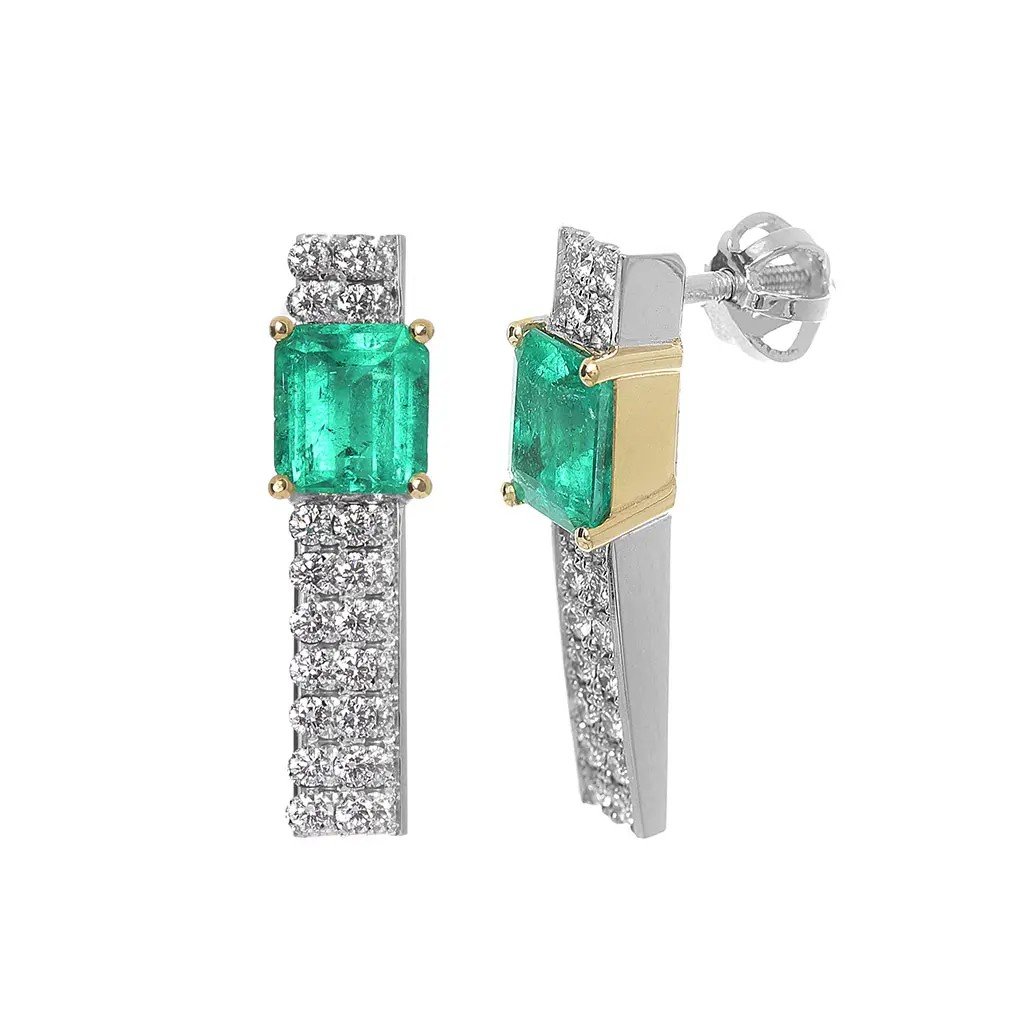 Ručně zhotovené náušnice z bílého a žlutého zlata s intenzivními smaragdy a třpytivými diamanty. Šperk, který svým leskem okouzlí každé setkání.