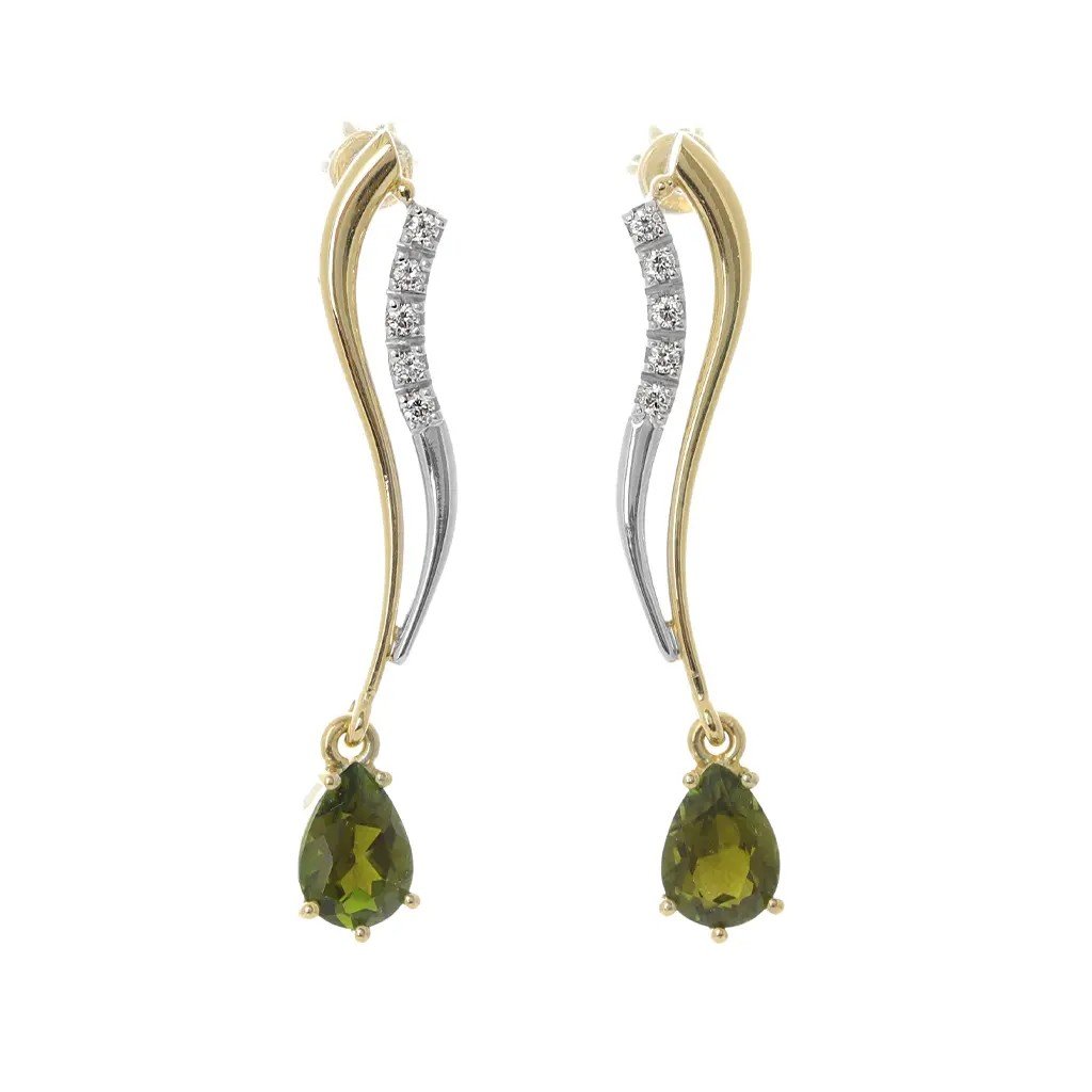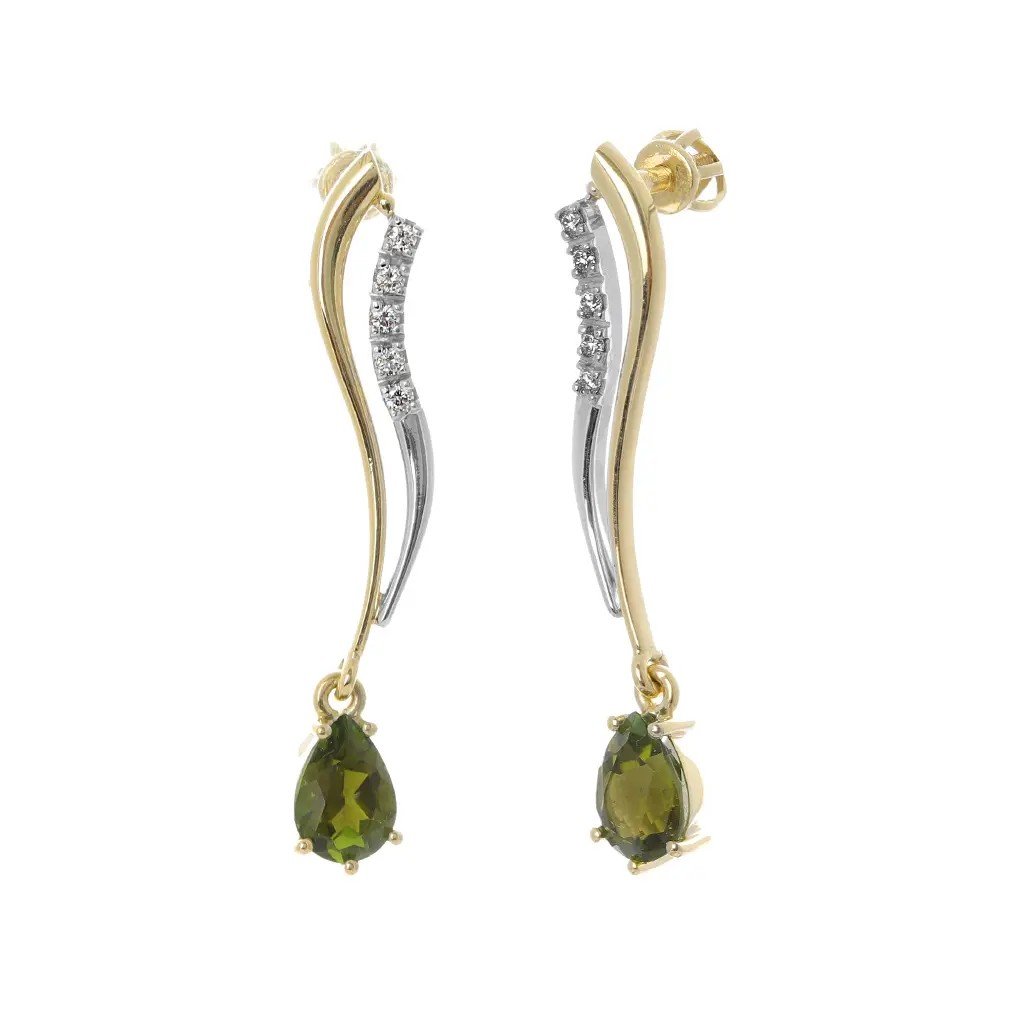 Okouzlující náušnice z bílého a žlutého zlata s intenzivně zelenými turmalíny a třpytivými diamanty. Šperk, který rozjasní každý pohled a okouzlí svou noblesou.