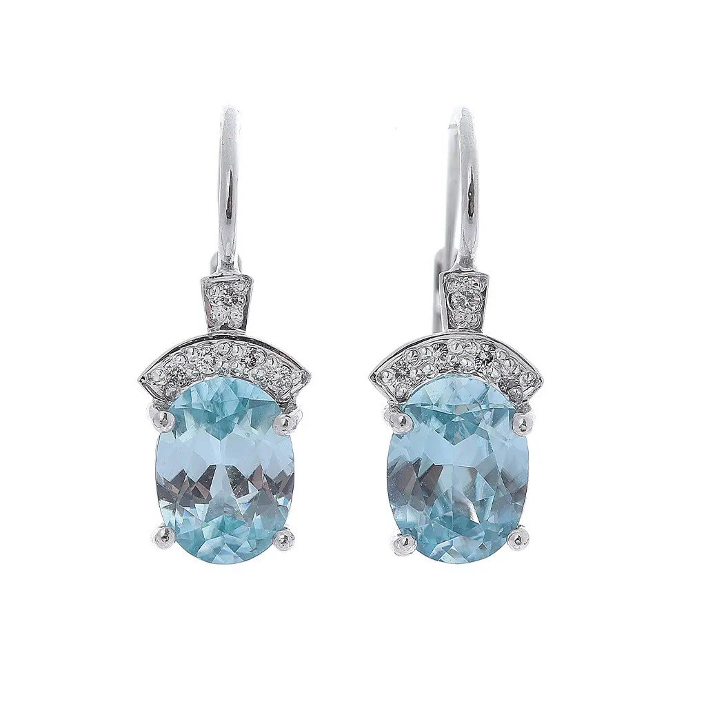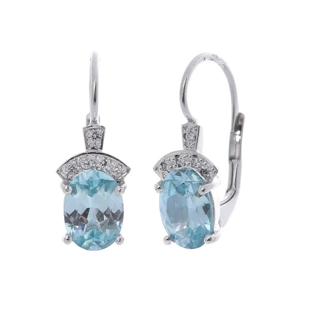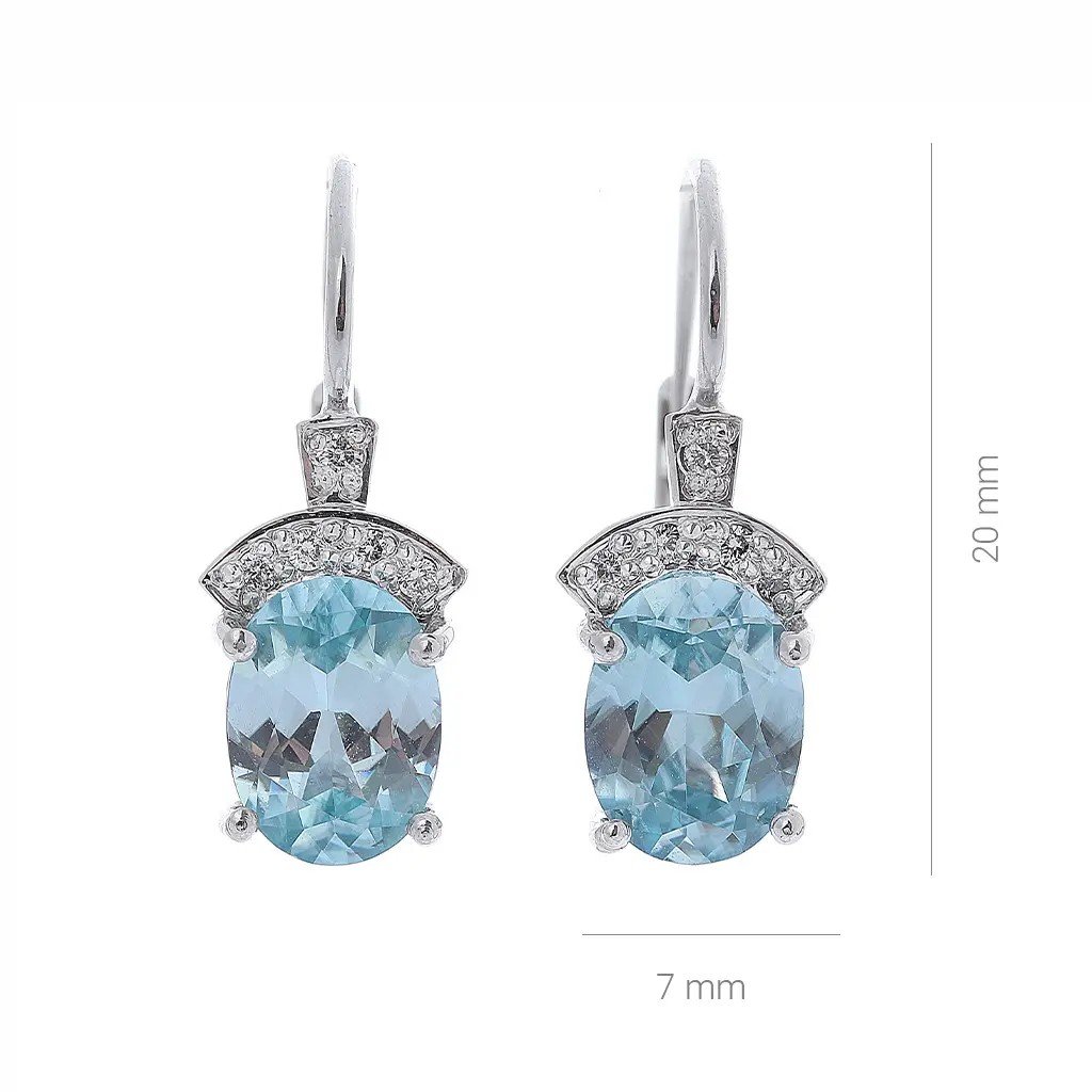 Náušnice z bílého zlata s přírodním modrým zirkonem a diamanty