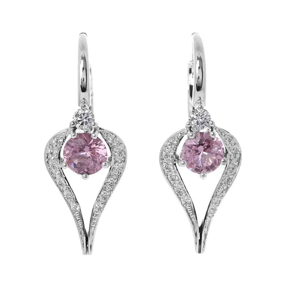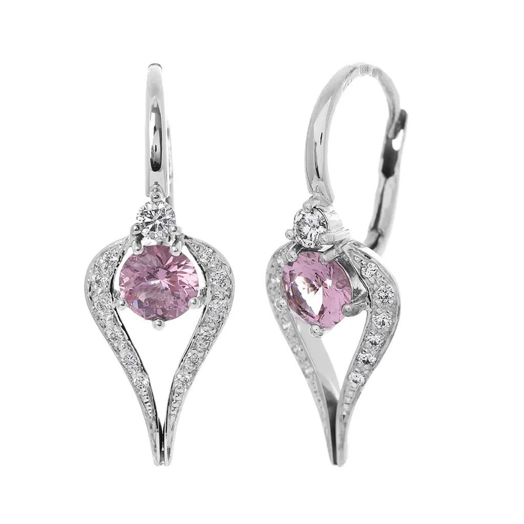 Elegantní náušnice z bílého zlata se zářivými spinely a diamanty – ruční výroba s možností doplnit přívěskem do setu.