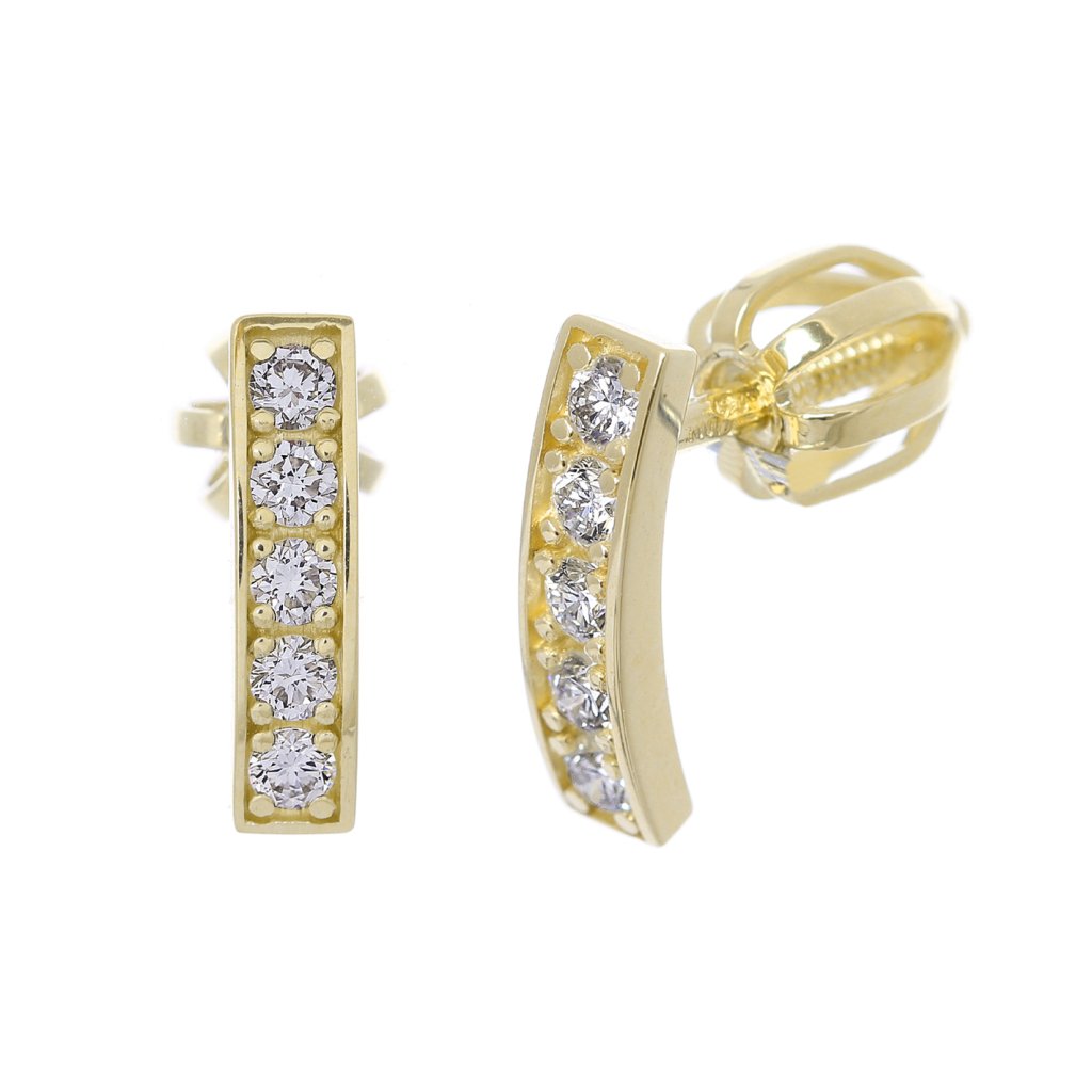 Tyto elegantní náušnice ze žlutého zlata ryzosti 585/1000 představují spojení jemné noblesy a precizního zlatnického zpracování. Celková hmotnost šperku činí 1,20 g, přičemž samotné zlato váží 1,16 g. Každý diamant byl odborně hodnocen ještě před zasazením, aby byla zaručena jeho kvalita, brilance a přirozený lesk.