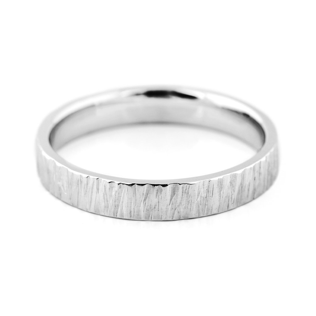 Snubní prsten z bílého zlata s matným povrchem. Nadčasový design, pohodlné nošení a ruční výroba.