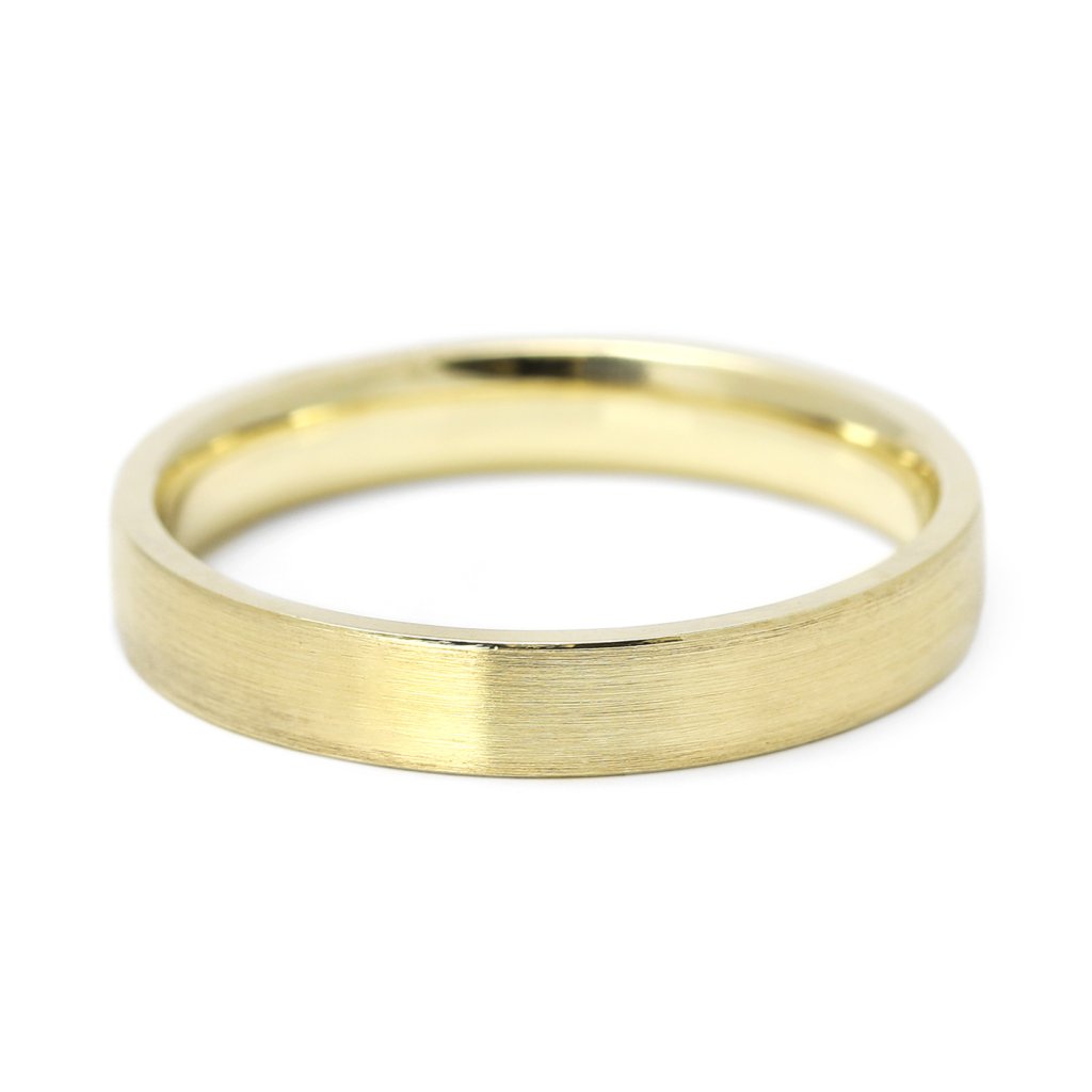 Pánský snubní prsten ze žlutého zlata s matným povrchem. Důstojný, elegantní a ručně zhotovený šperk s komfortním profilem.