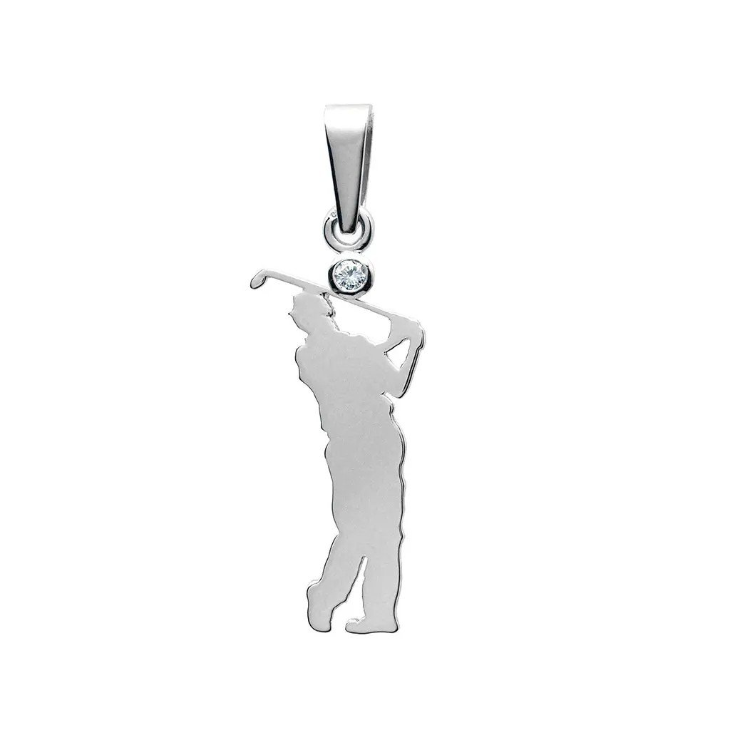 Ručně vyrobený přívěsek „Golfista“ z bílého zlata s přírodním diamantem. Stylový a elegantní šperk pro milovníky golfu.