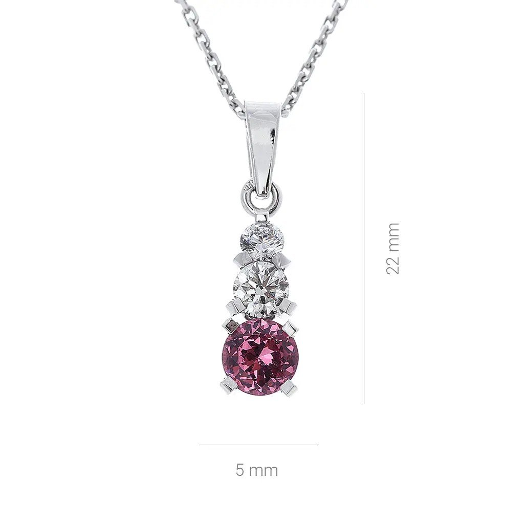 Luxusní přívěsek z bílého zlata osazený přírodním purpurově růžovým spinelem a dvěma zářivými diamanty. Originální šperk, který zvýrazní ženskou eleganci a výjimečný vkus.
