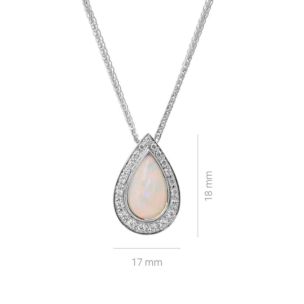 Přívěsek ve tvaru kapky s opálem a diamanty z bílého zlata
