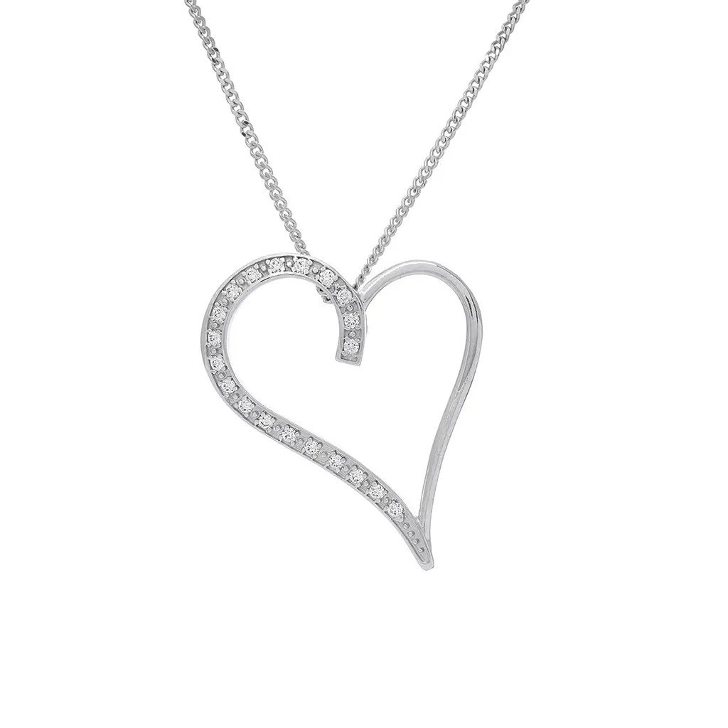 Elegantní přívěsek ve tvaru srdce z bílého zlata zdobený 20 briliantovými diamanty. Nadčasový šperk z lásky, který nikdy neztratí kouzlo.