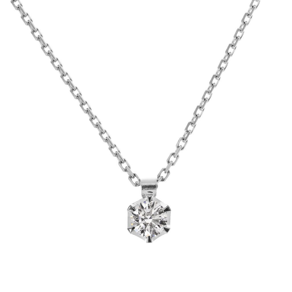 Náhrdelník je vyroben z bílého zlata ryzosti 585/1000 a díky nastavitelné délce 42/45 cm se skvěle přizpůsobí každému dekoltu. Hlavním prvkem je přírodní diamant v kulatém briliantovém brusu o průměru 3,4 mm a hmotnosti 0,147 ct. Kámen vyniká vzácně bílou barvou G a čistotou SI1, což mu dodává oslnivou brilanci a jas. Čistá váha bílého zlata je 1,44 g a celková hmotnost celého náhrdelníku činí 1,47 g.