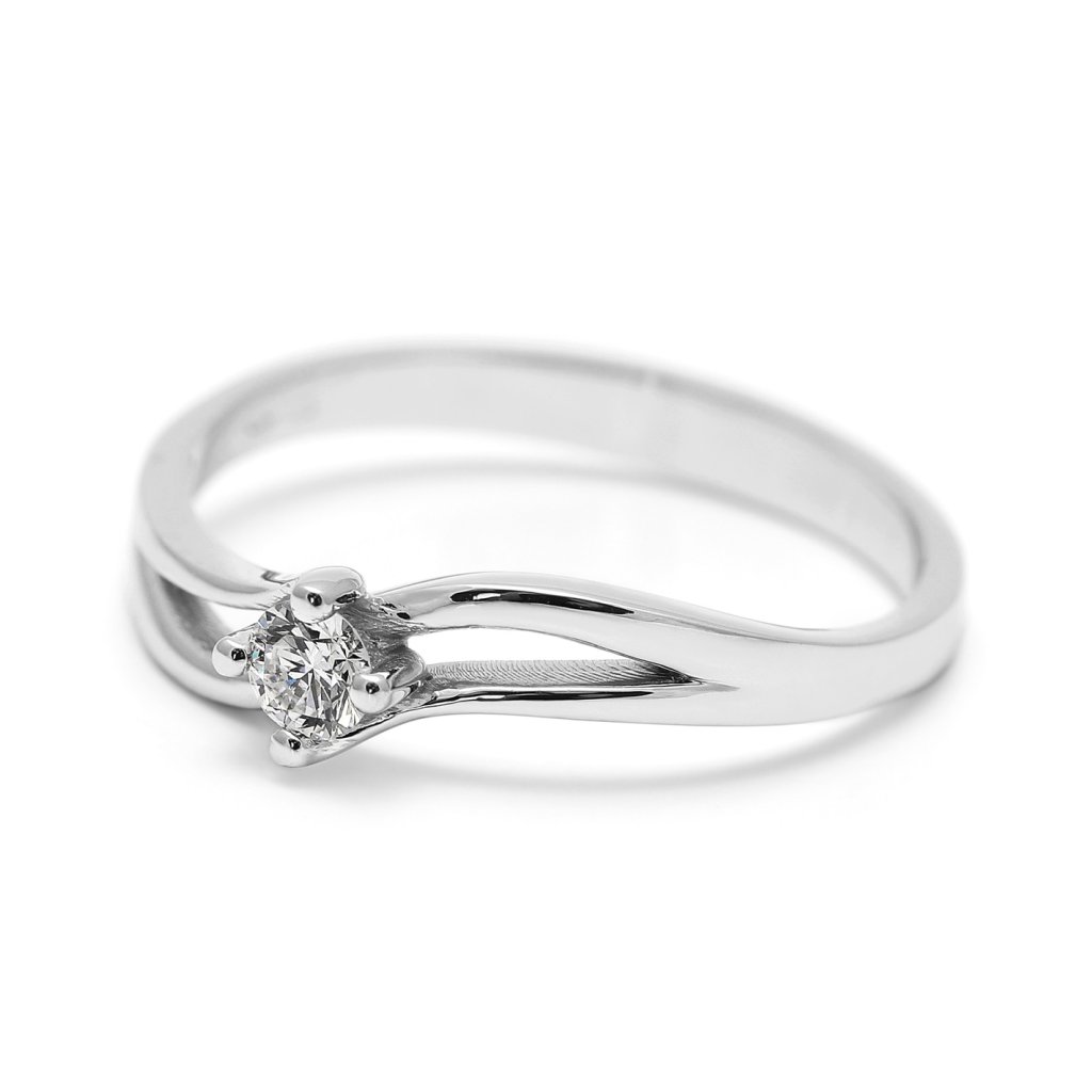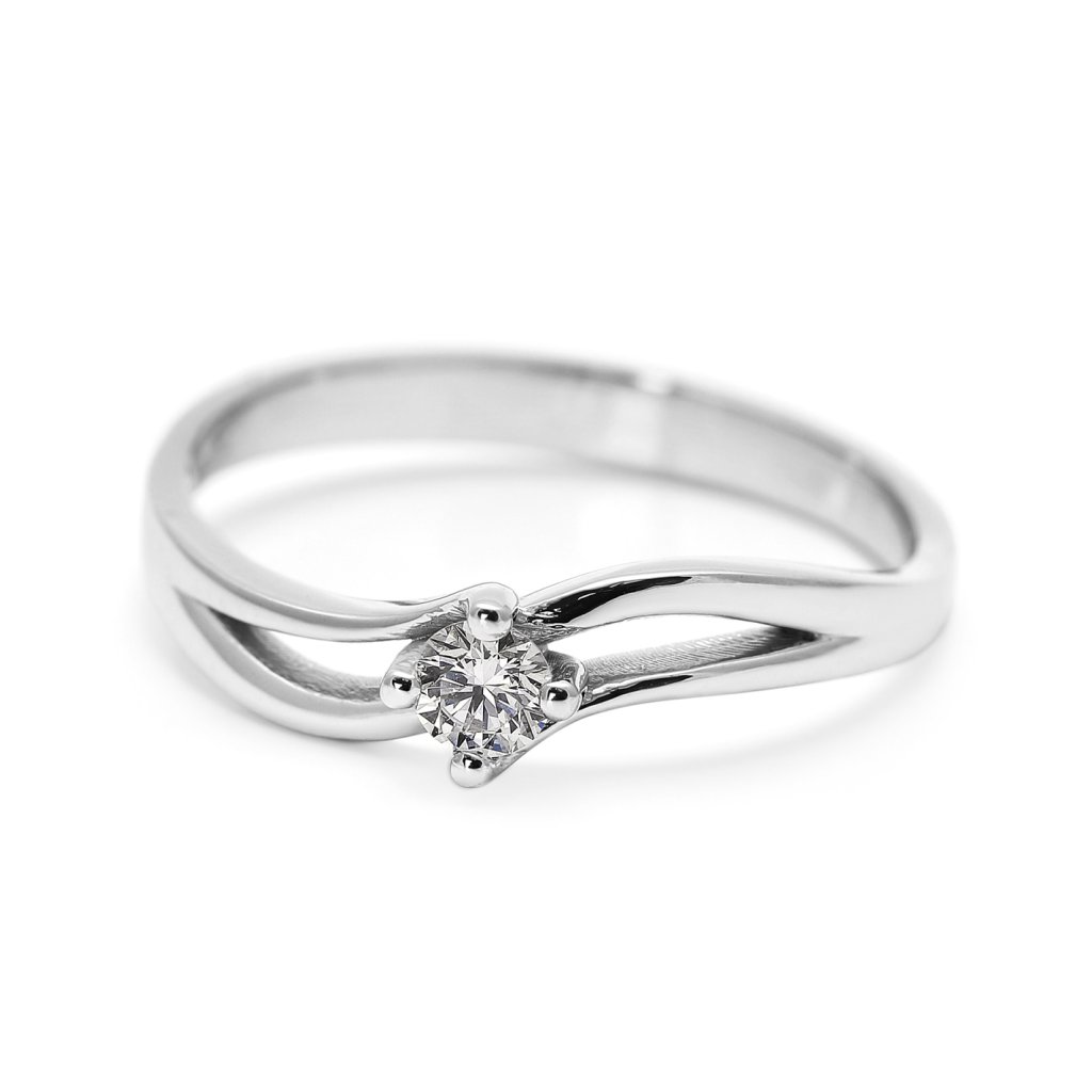 Jemný prsten z bílého zlata 585/1000 zdobený přírodním diamantem v briliantovém brusu. Nadčasová elegance, precizní zpracování a čistý třpyt solitéru.