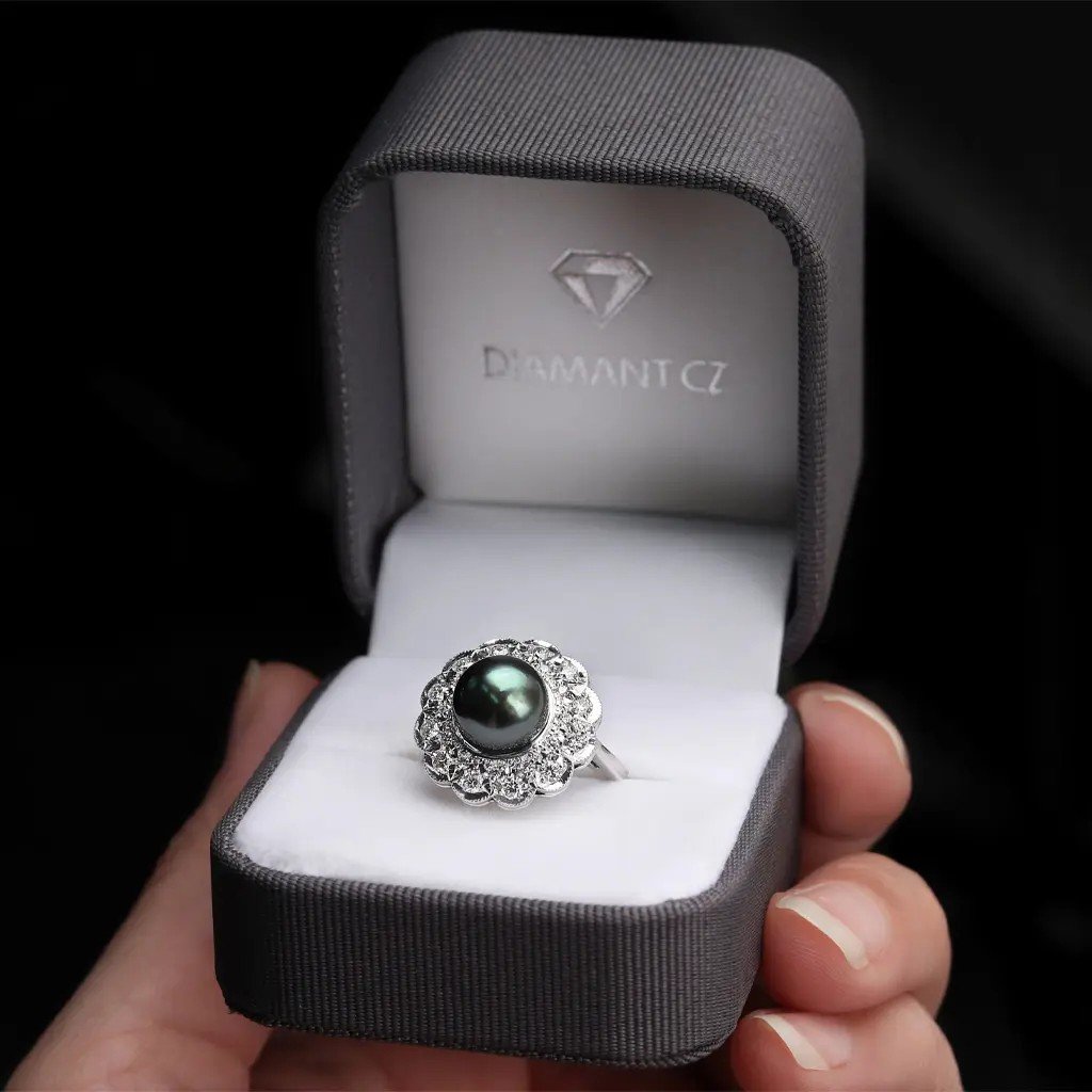 Elegantní prsten z bílého zlata, v němž se snoubí kouzlo perly Tahiti s jiskřivými diamanty. Luxusní šperk, který podtrhne krásu své nositelky a stane se nadčasovým rodinným pokladem.