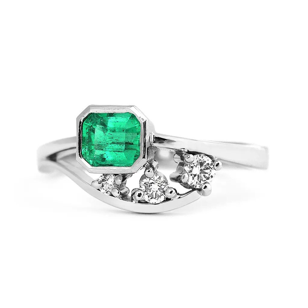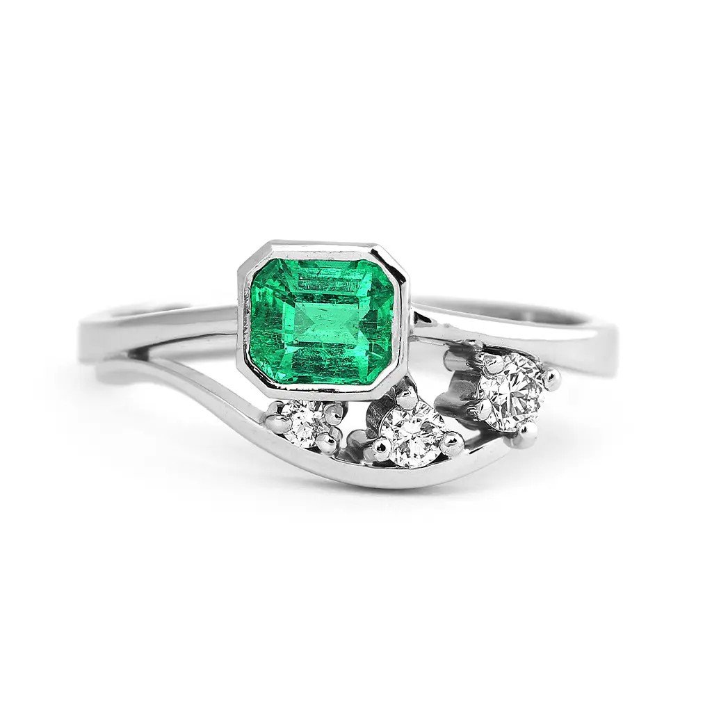 Elegantní prsten s přírodním kolumbijským smaragdem a třpytivými diamanty spojuje nadčasovou krásu, luxusní zlato a jemnou romantiku – ideální symbol lásky a výjimečných okamžiků.