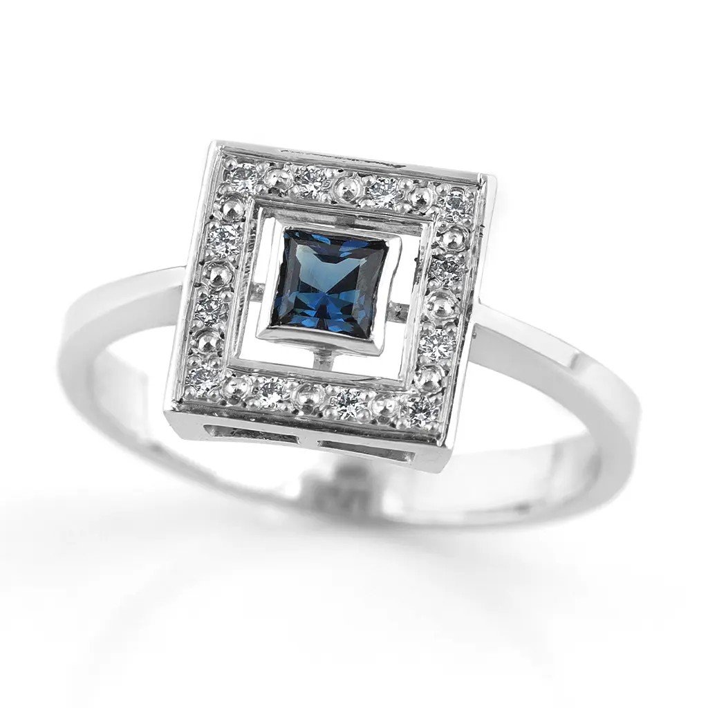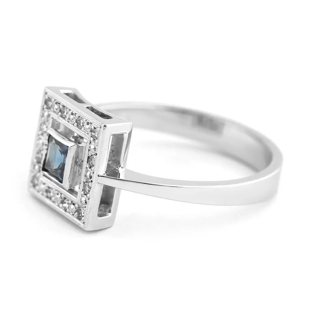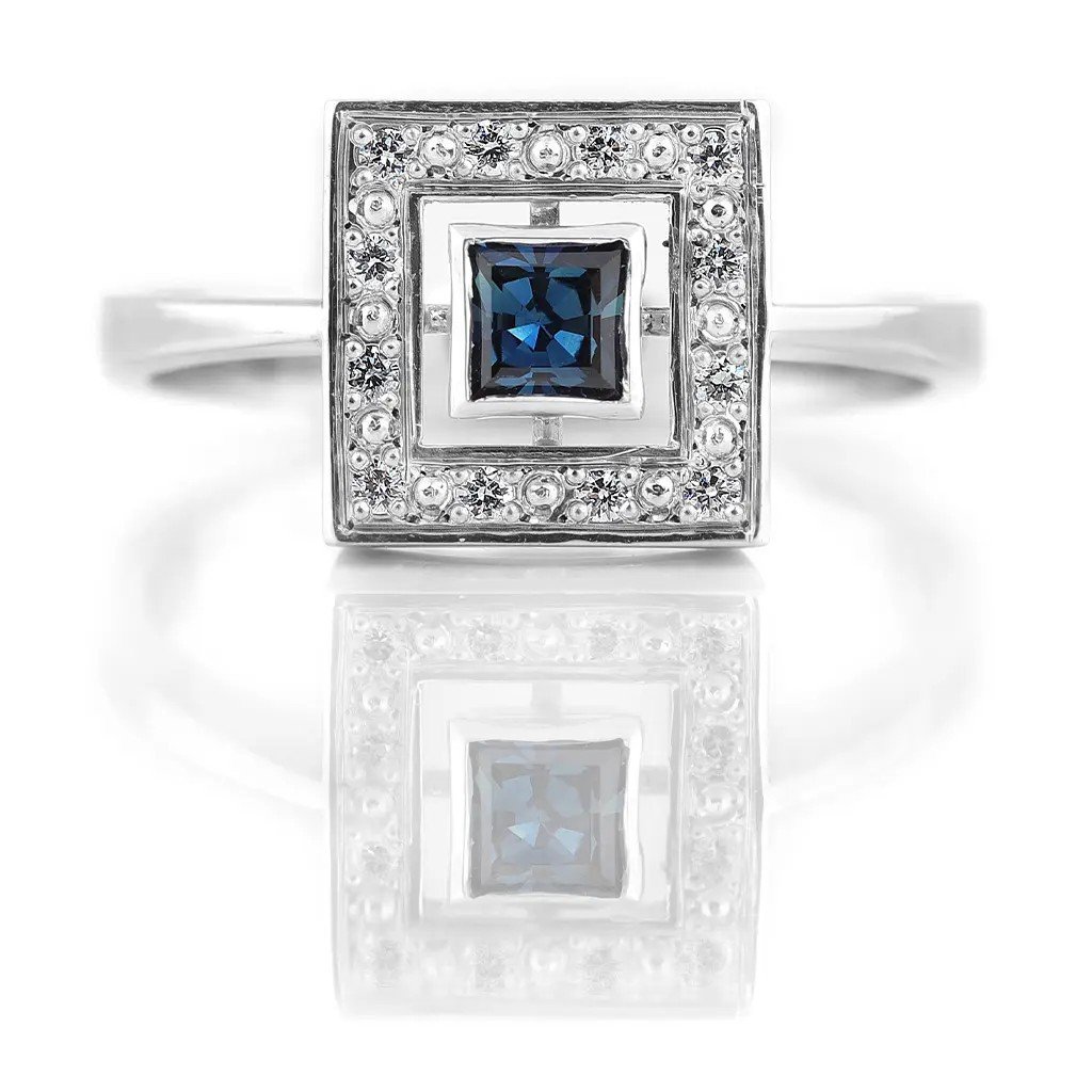Moderní prsten z bílého zlata, který se stane symbolem elegance i hlubokých citů. V jeho srdci září tmavě modrý přírodní safír čtvercového tvaru o rozměrech 3,5 × 3,5 mm a hmotnosti 0,245 ct. Tento safír, jenž prošel jemnou tepelnou úpravou (TE), okouzlí svou transparentní krásou a barvou připomínající noční oblohu plnou tajemství.