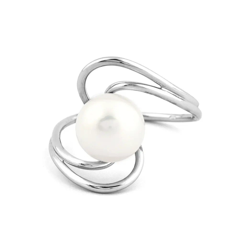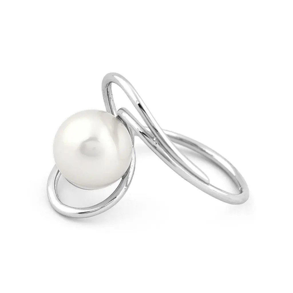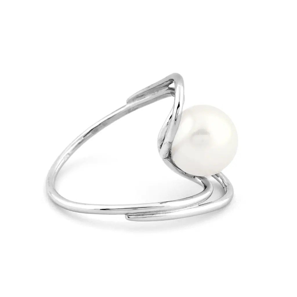 Prsten se sladkovodní perlou z bílého zlata, vel. 54