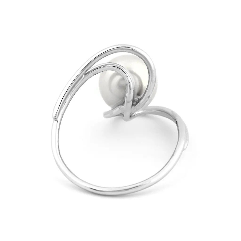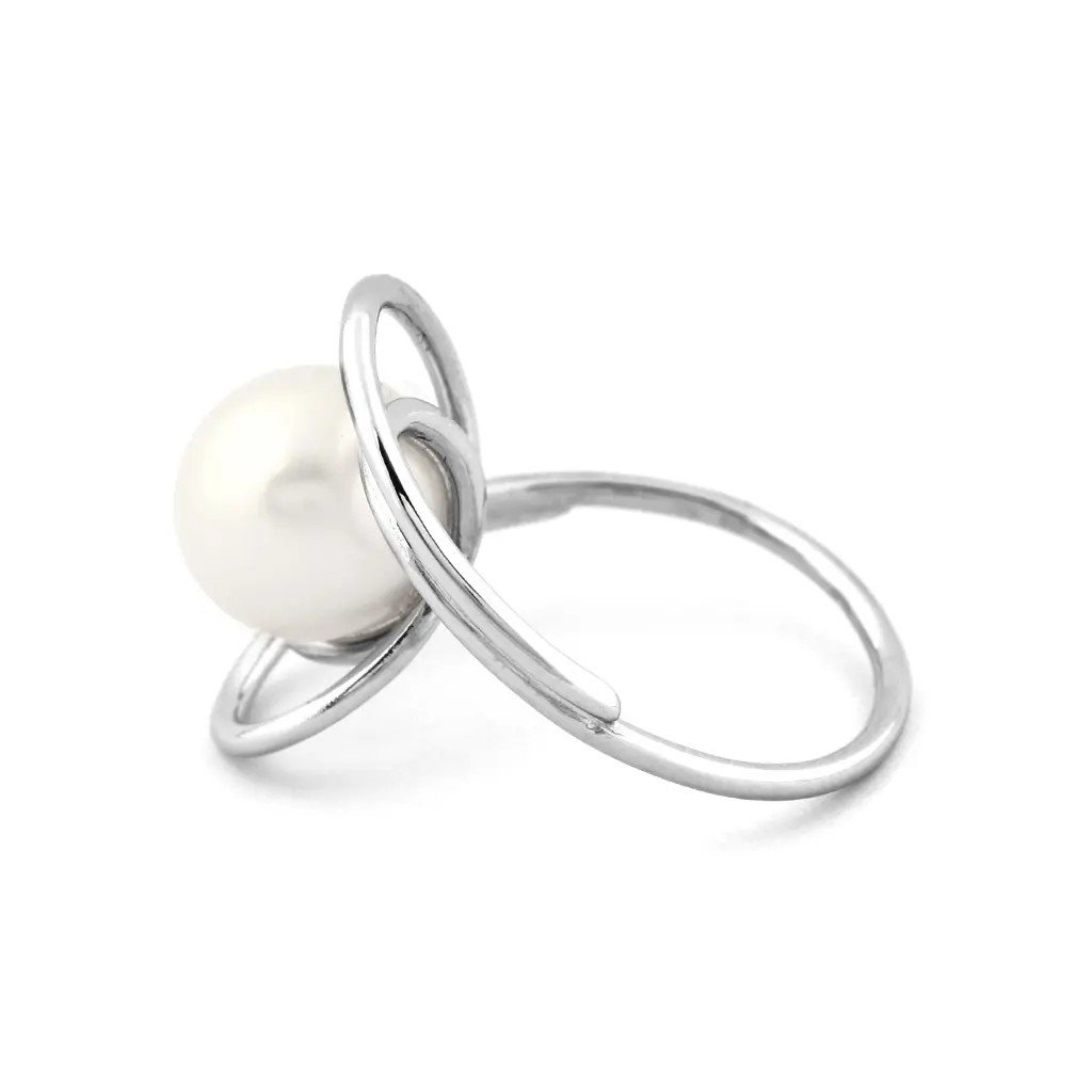 Prsten z bílého zlata s výrazným designem a velkou bílou perlou. Ruční výroba, originální šperk pro ženy s osobitým stylem.