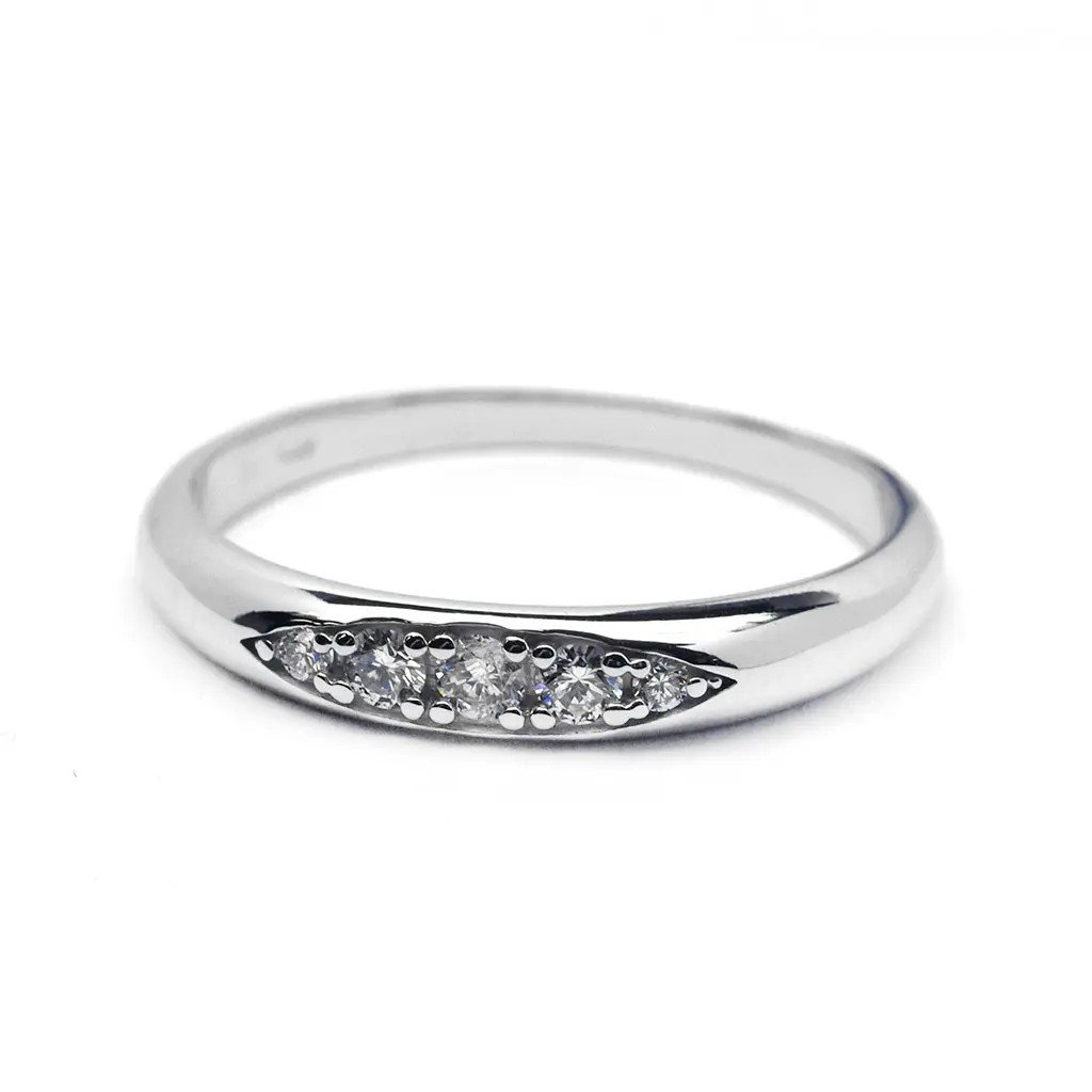 Prsten z bílého zlata zdobený pěti brilianty. Nadčasová elegance v jemném provedení, které podtrhne krásu každého okamžiku.