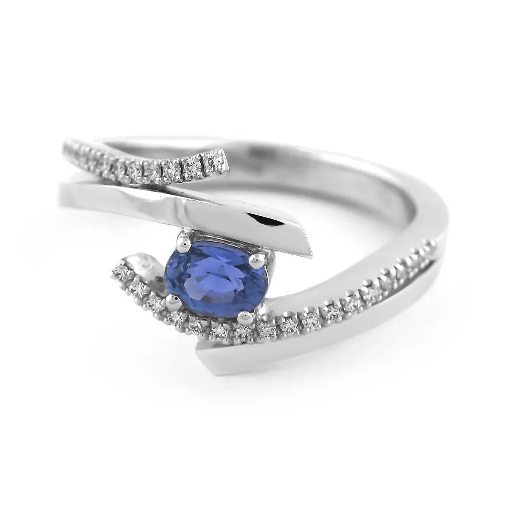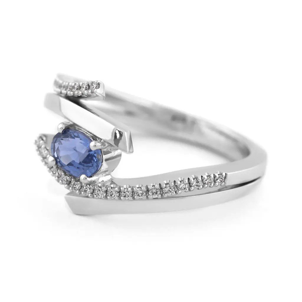 Prsten z bílého zlata s přírodním safírem a diamanty je šperkem, který v sobě spojuje jemnost i vznešenost. Jeho srdcem je oválný modrý safír o rozměrech 5,47 × 4,11 × 3,21 mm a hmotnosti 0,629 ct, pocházející ze Srí Lanky. Tento drahokam, bez známek tepelné úpravy (NTE), uchvacuje svou přirozenou barvou a průzračností, která v sobě nese hloubku oceánu i klid noční oblohy.