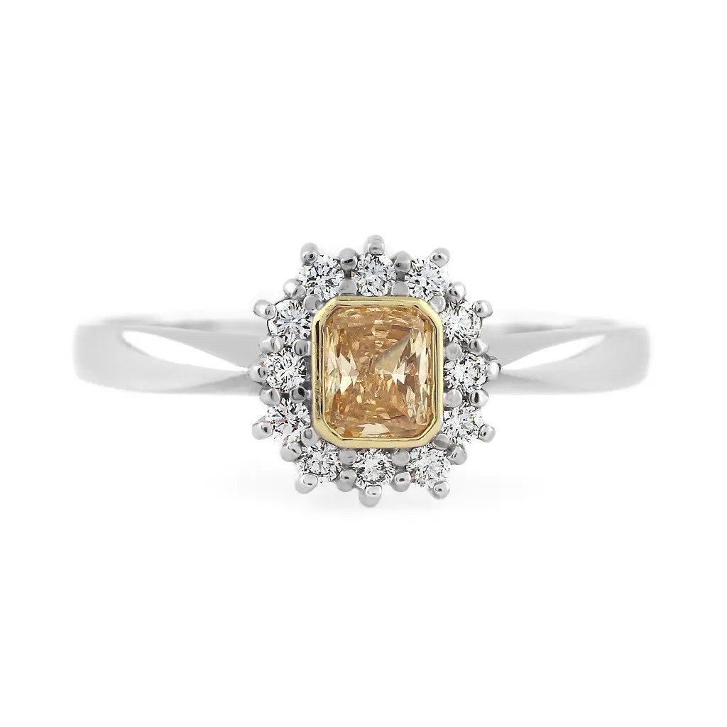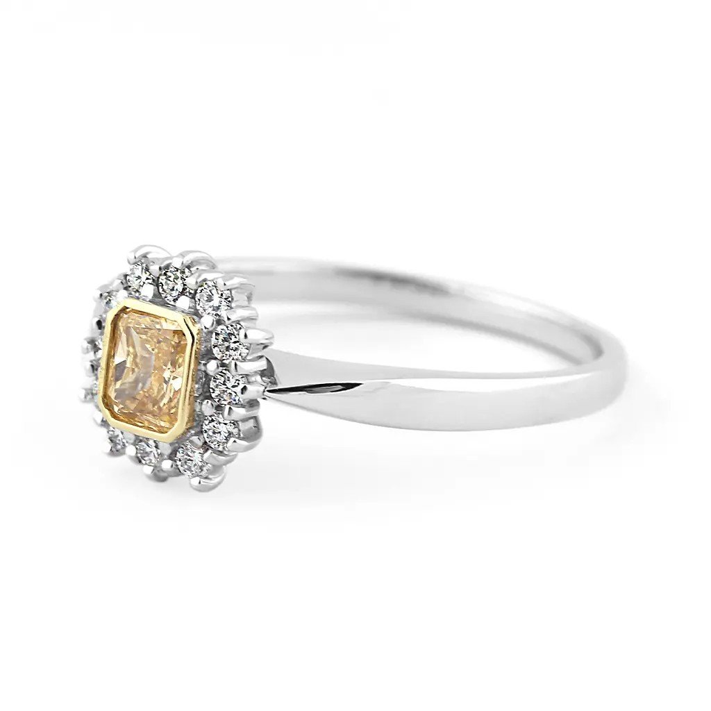 Prsten z bílého zlata se žlutým diamantem a bílými diamanty okolo, vel. 56