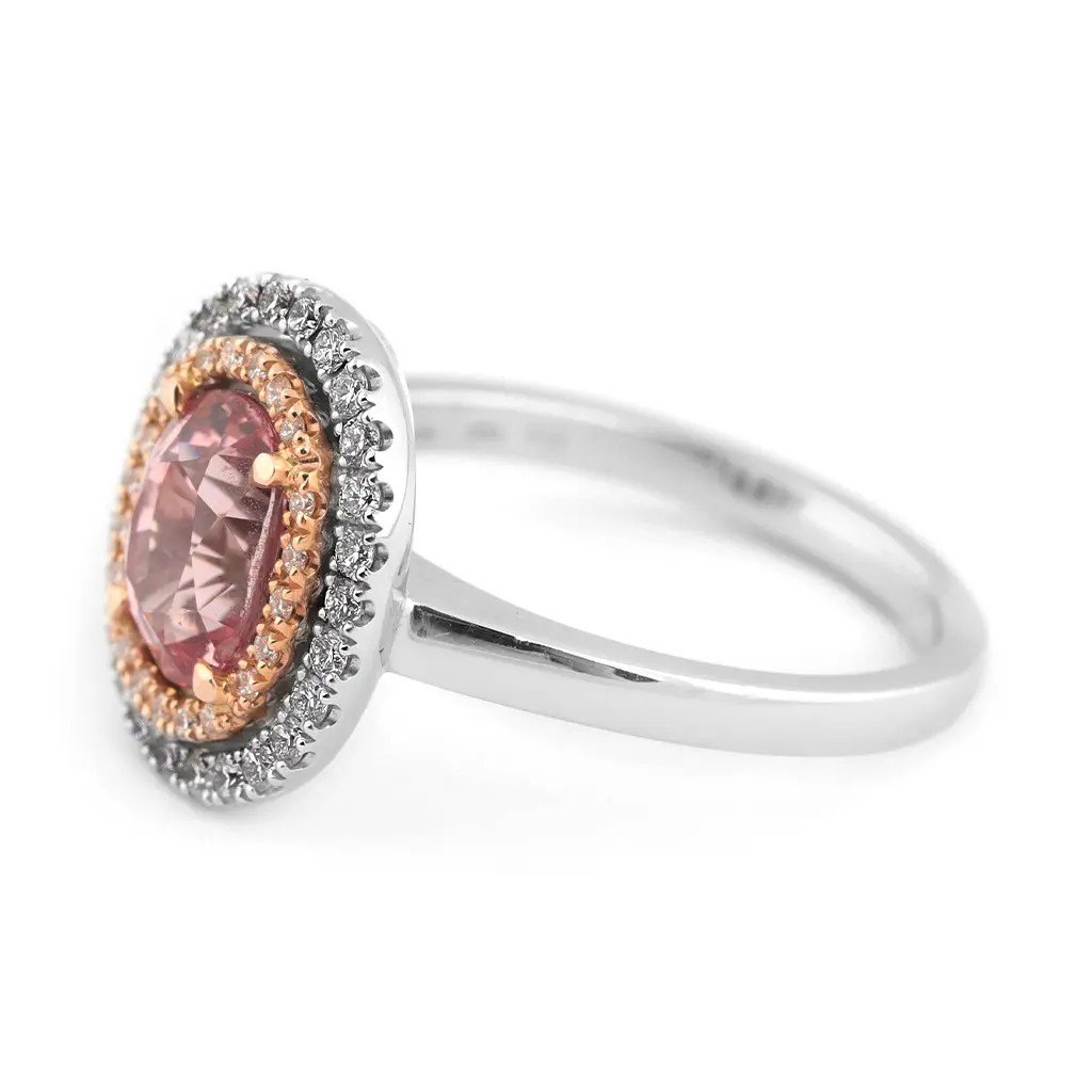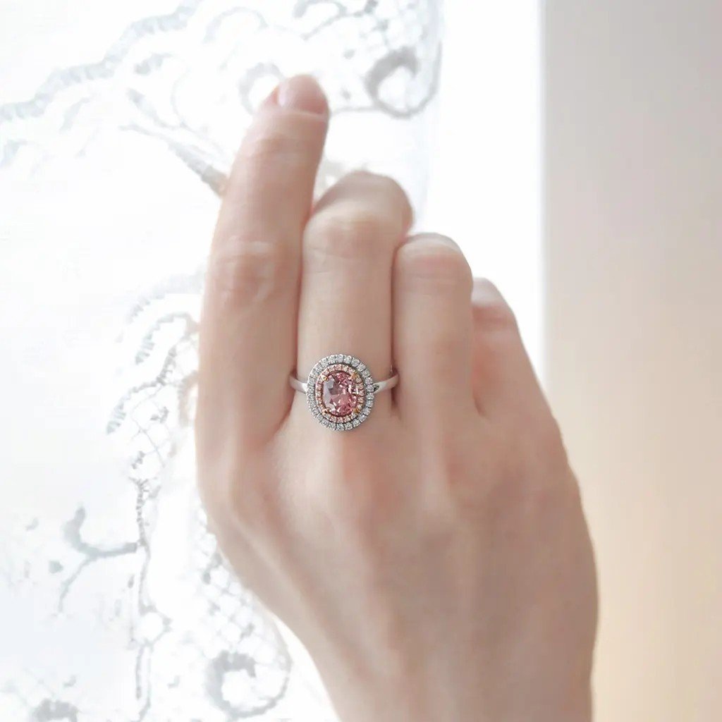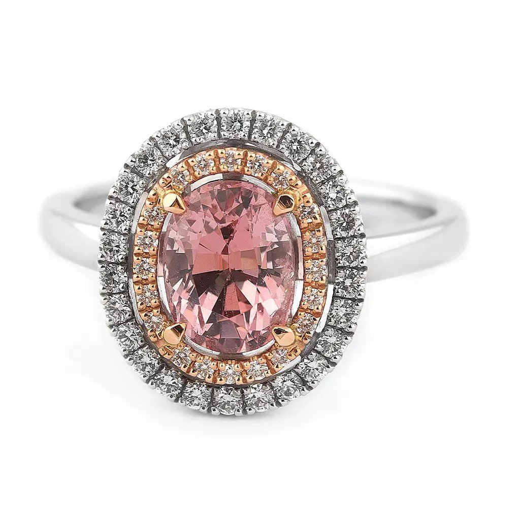 Romantický prsten s růžovým spinelem a dvojitým diamantovým orámováním v kombinaci bílo růžového zlata, vel. 56