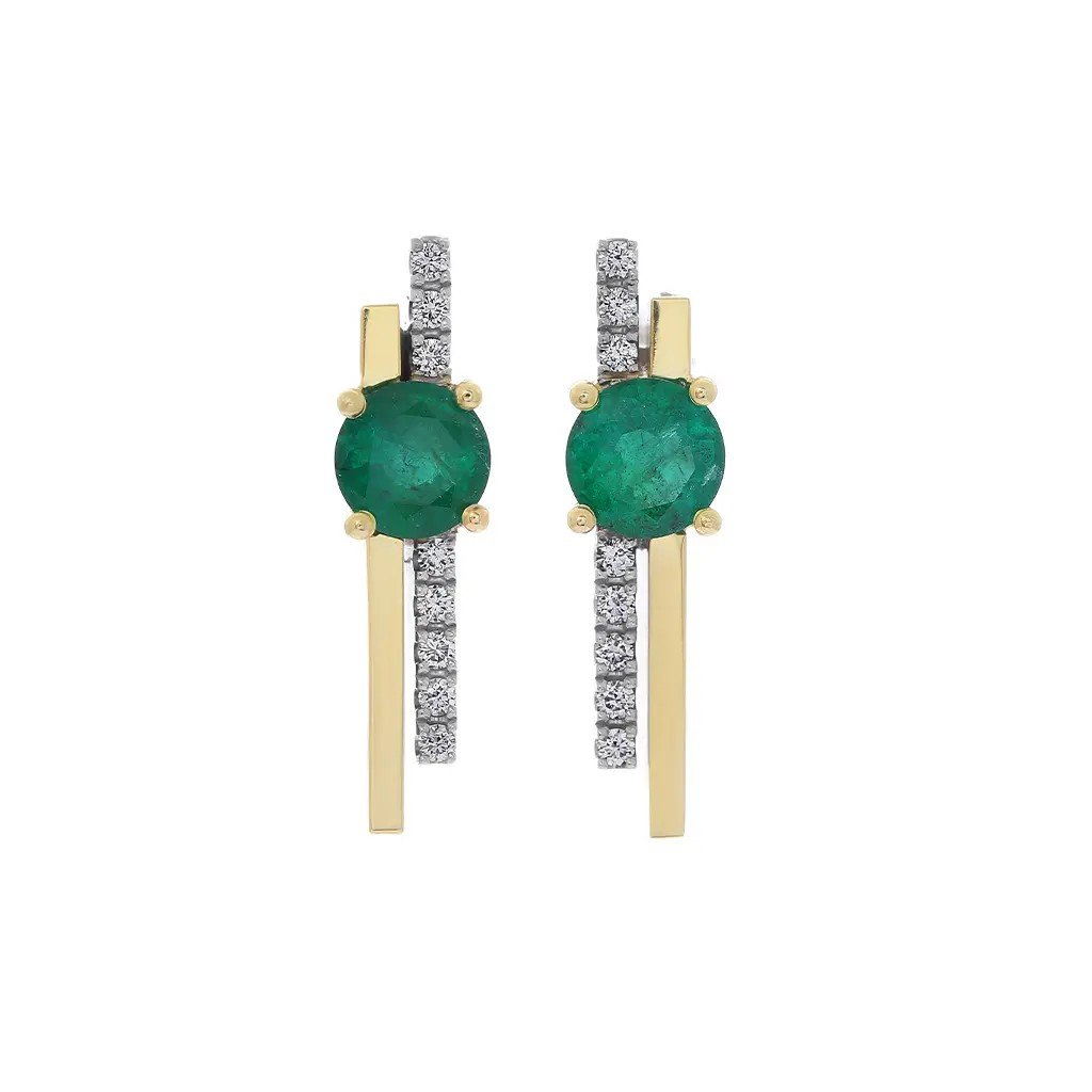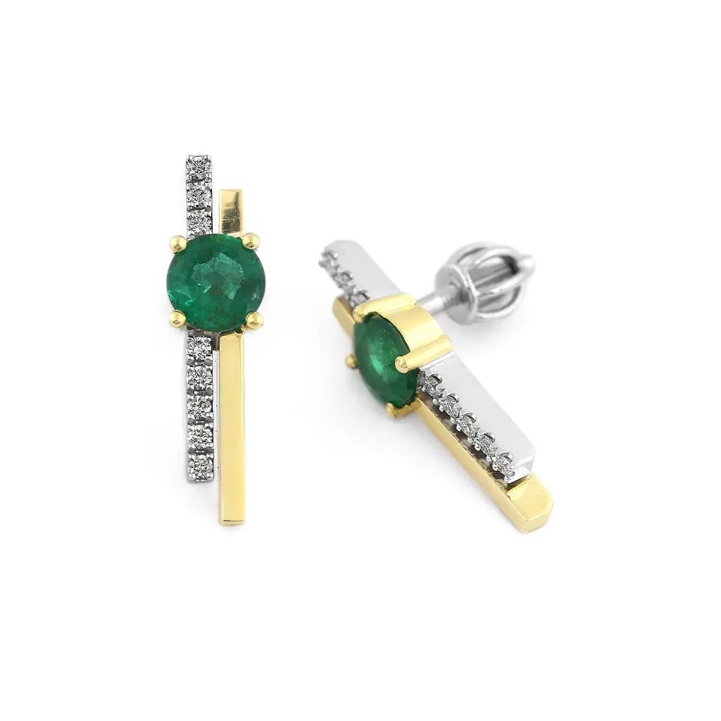 Dominantou náušnic jsou dva kulaté fasetované smaragdy o průměru 5,2 mm a celkové hmotnosti 1,048 ct. Jejich lehce namodrale zelený odstín, typický pro smaragdy s úpravou fisur (F2–F3), připomíná hloubku tropických lesů a dodává šperku nádech tajemství.