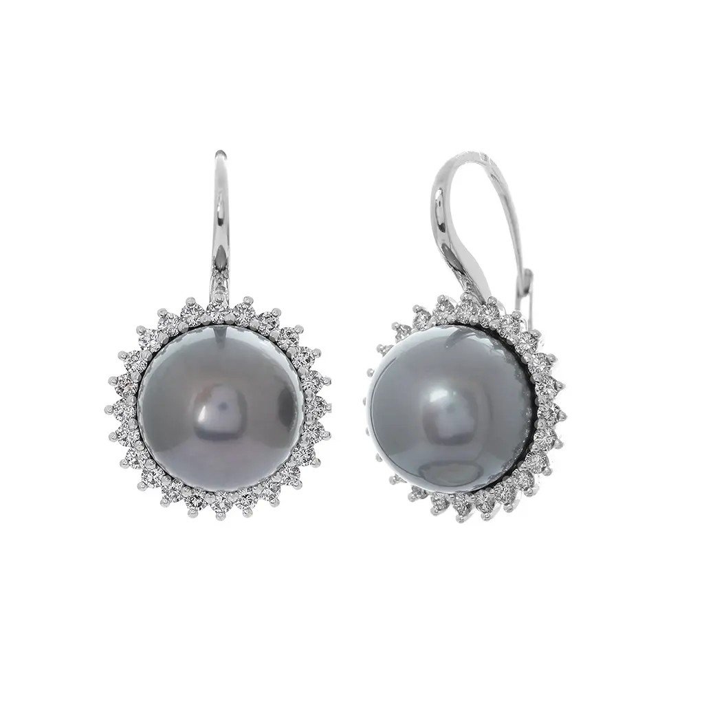 Ručně vyrobené náušnice z bílého zlata se tmavě šedou perlou Tahiti a třpytivými diamanty. Elegantní a sofistikovaný šperk pro nezapomenutelné okamžiky.