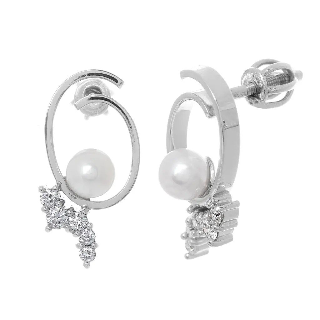 Ručně vyrobený pár náušnic se sladkovodní perlou a přírodními diamanty z bílého zlata