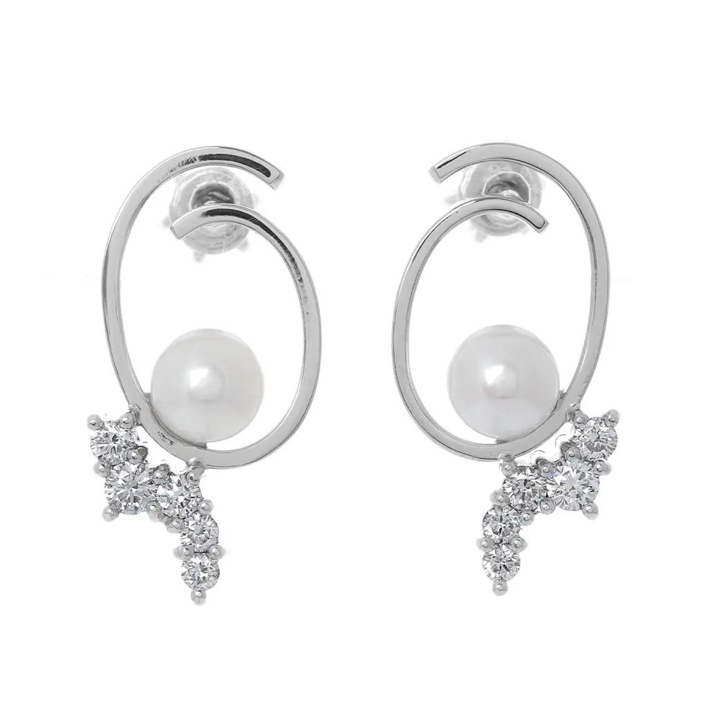 Ručně zhotovené náušnice z bílého zlata s jemnými sladkovodními perlami a třpytivými diamanty. Nadčasový šperk pro okouzlující chvíle.