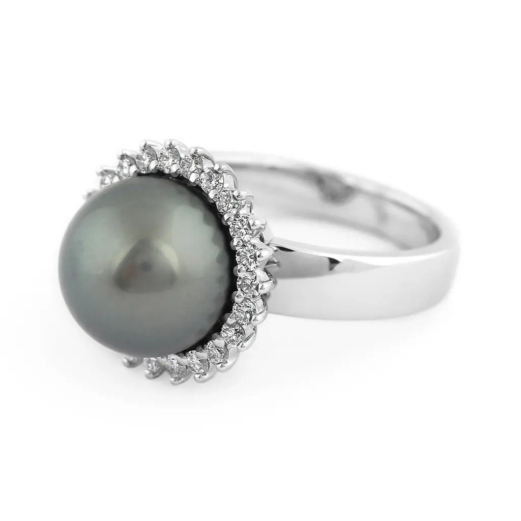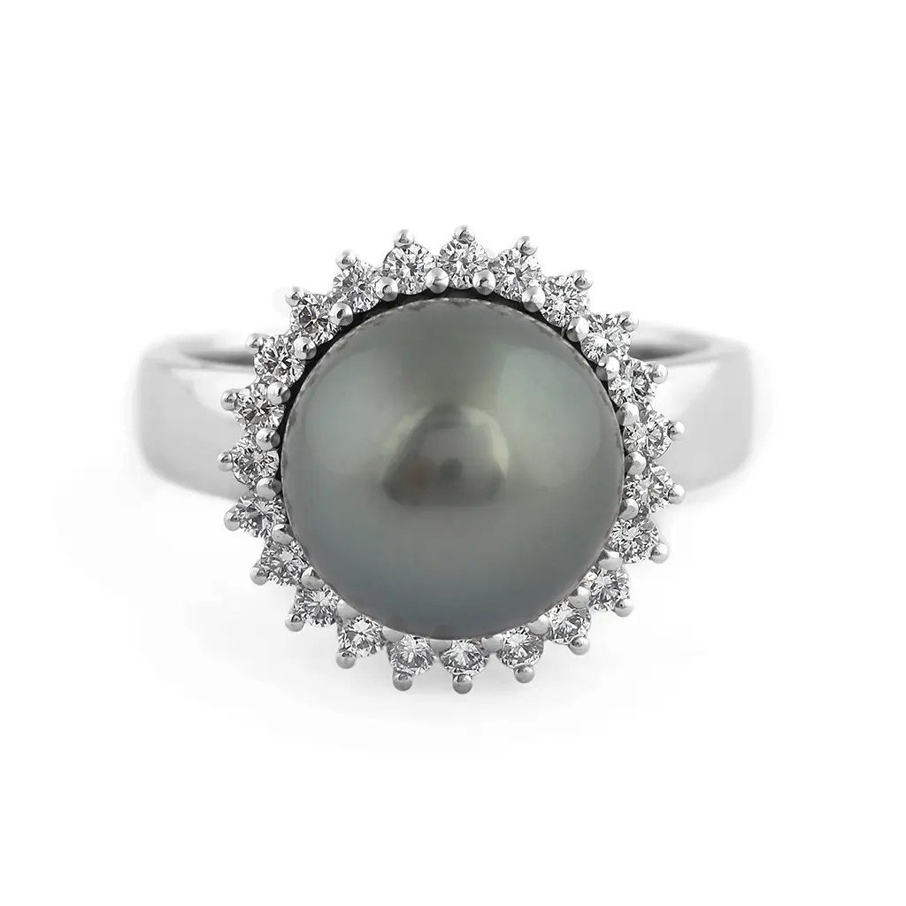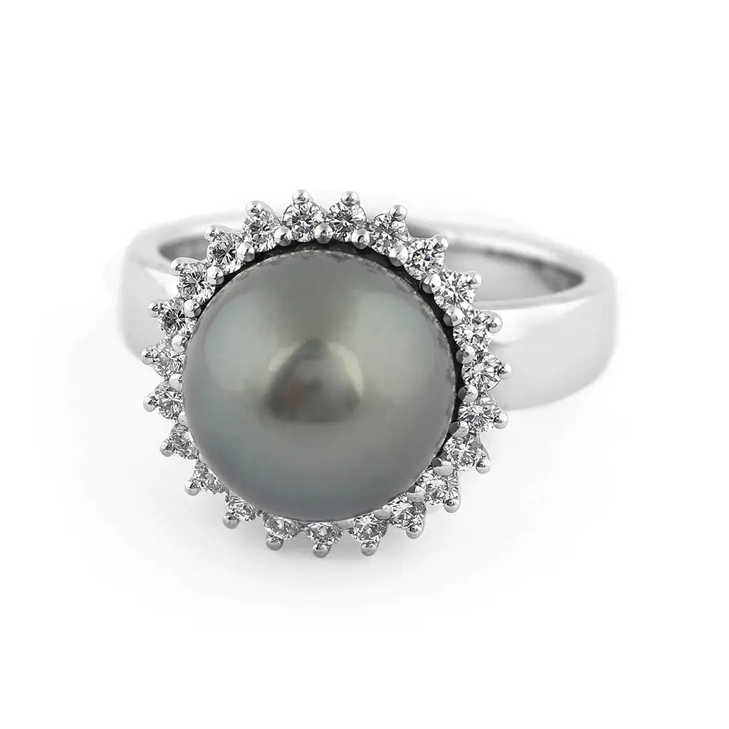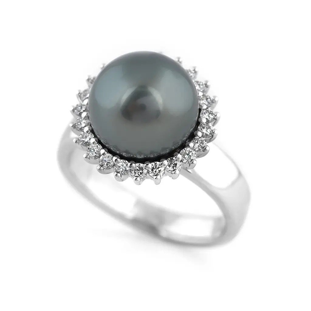 Unikátní prsten s Tahiti perlou a diamanty v bílém zlatě