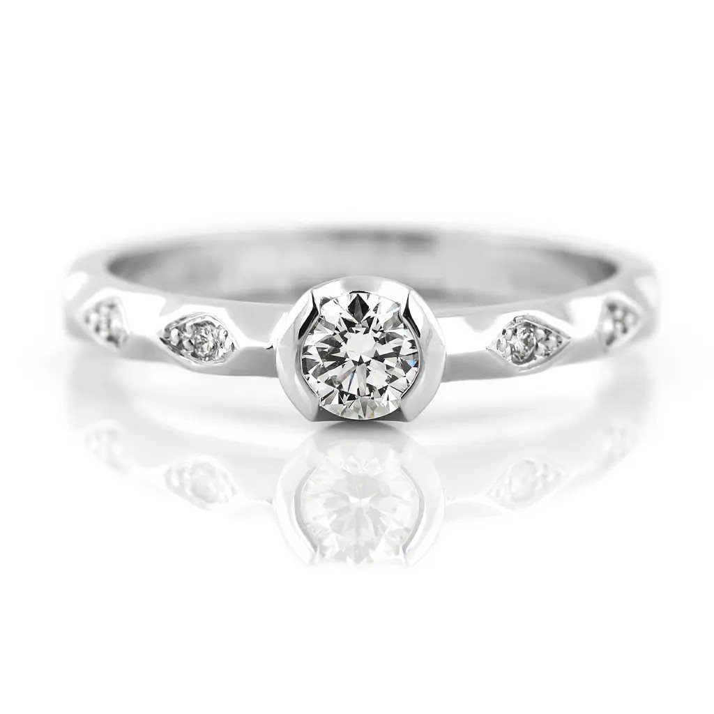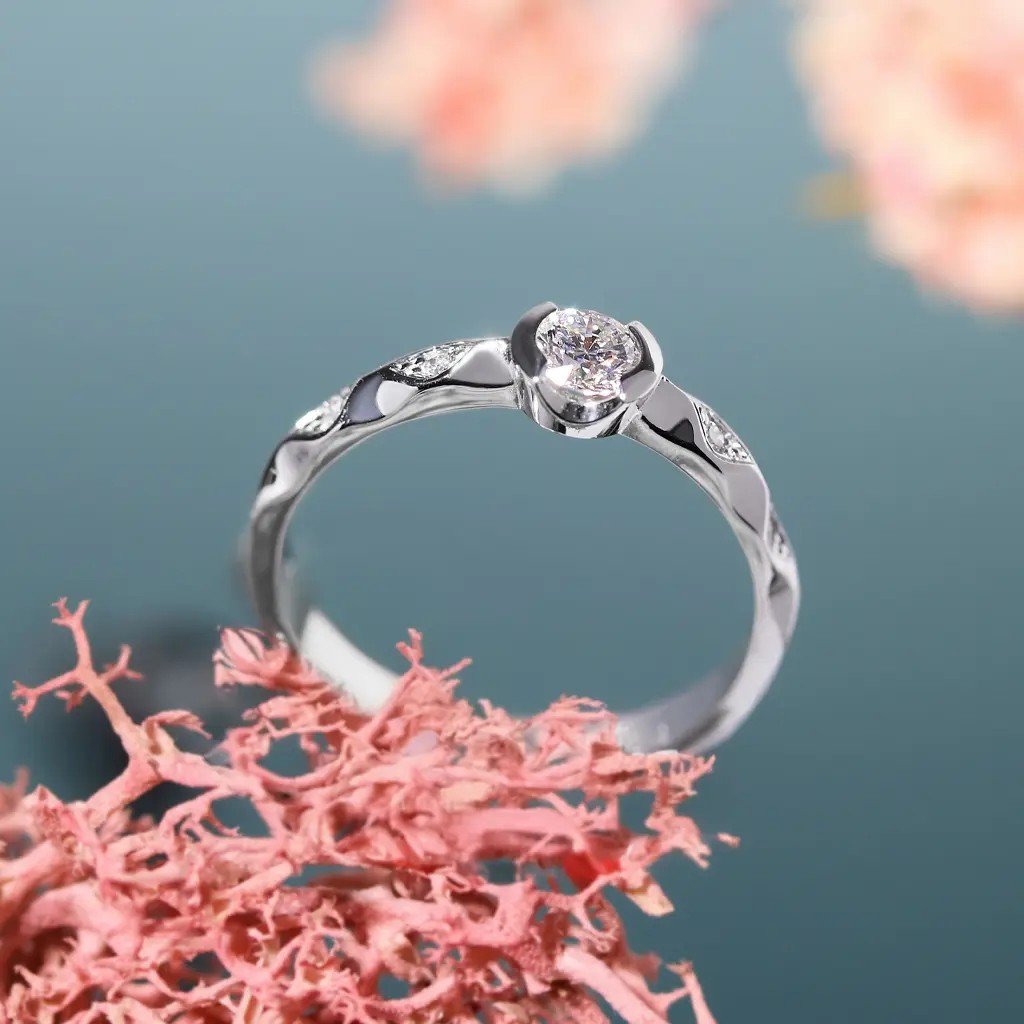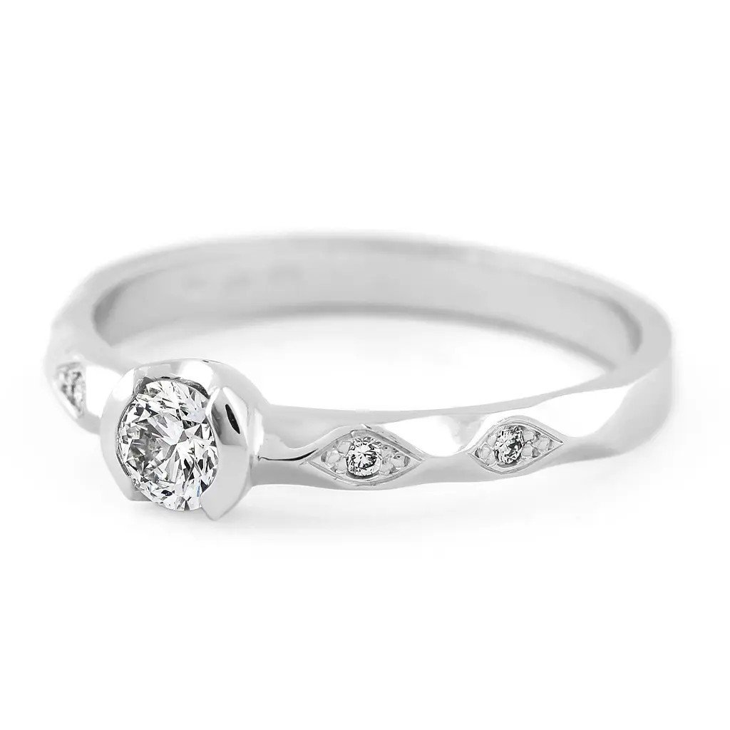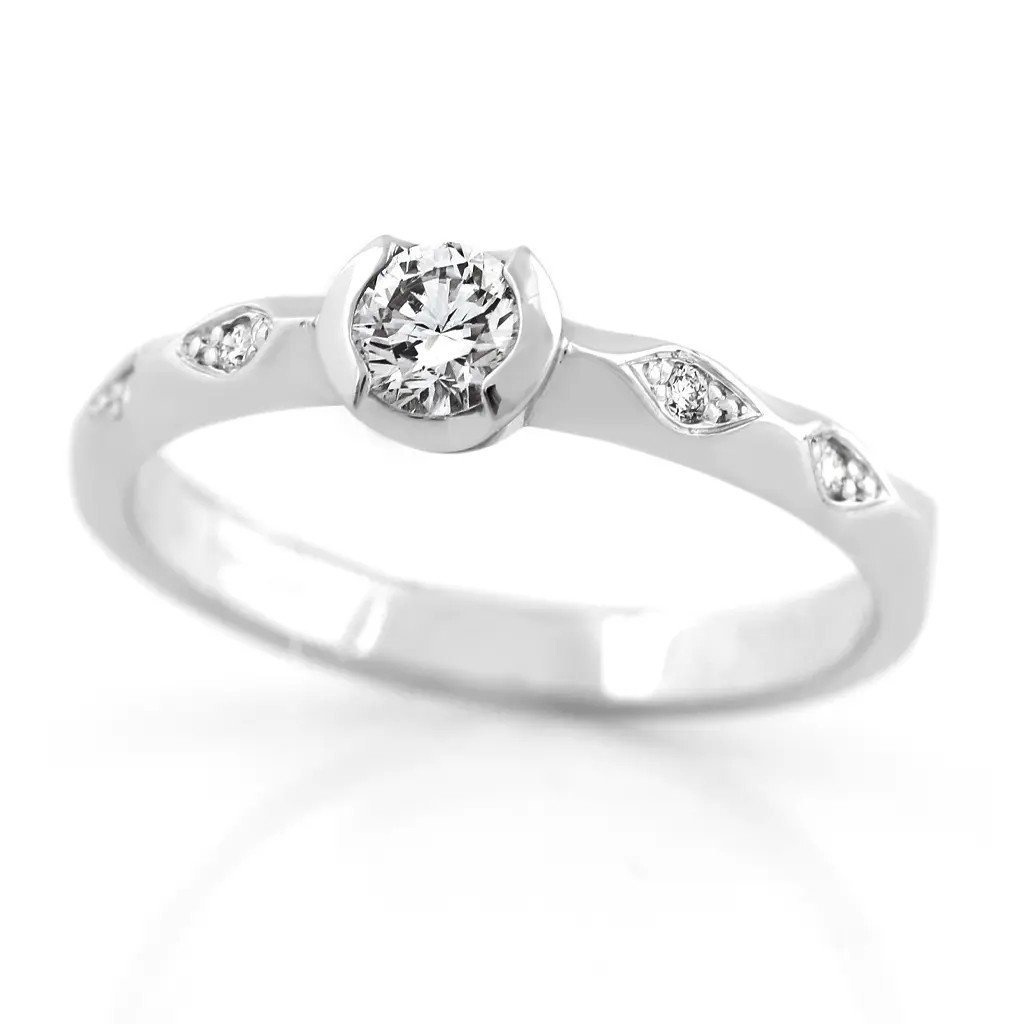 Prsten z bílého zlata s diamantem 0,297 ct a brilianty – šperk, který symbolizuje lásku, jemnost a nadčasovou eleganci.