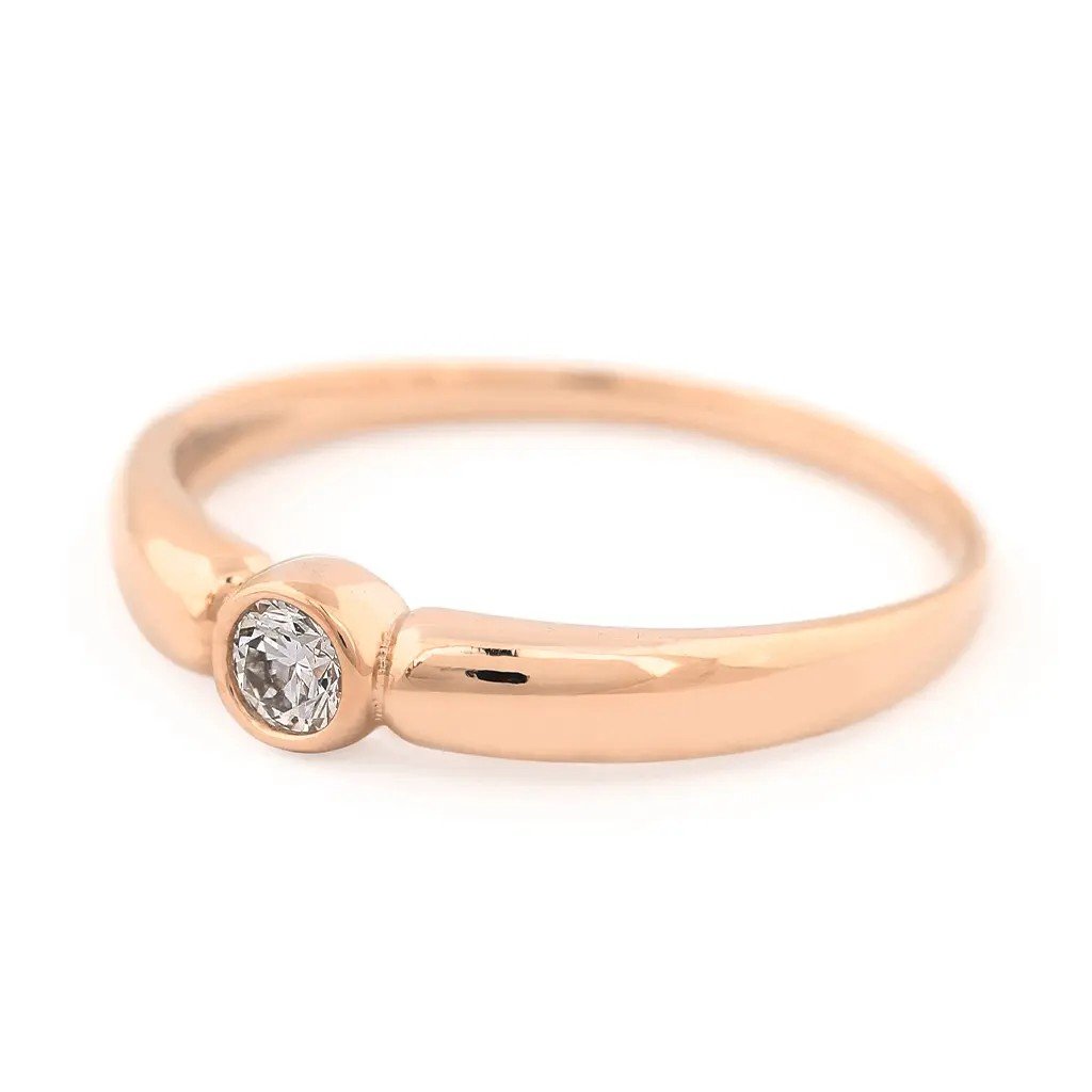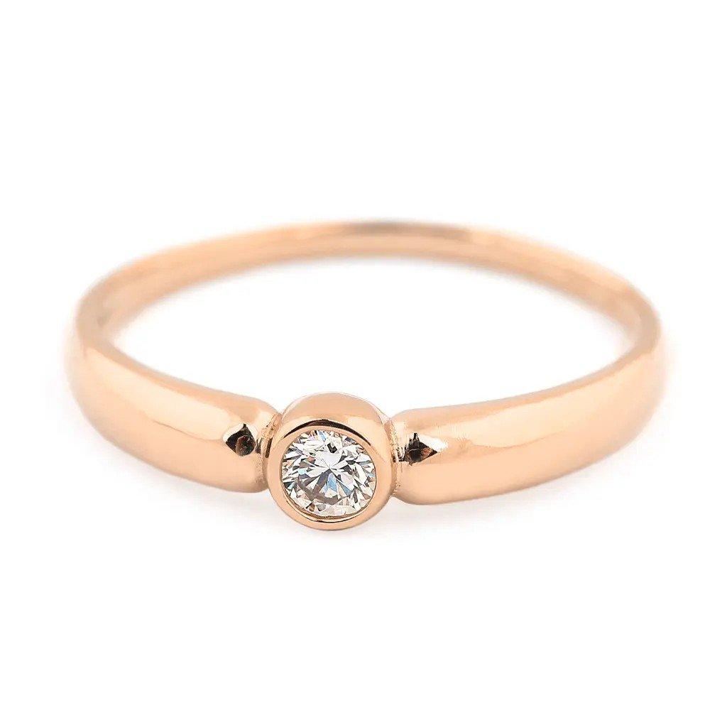 Moderní zásnubní prsten z růžového zlata s přírodním diamantem. Elegantní a cenově dostupný šperk.