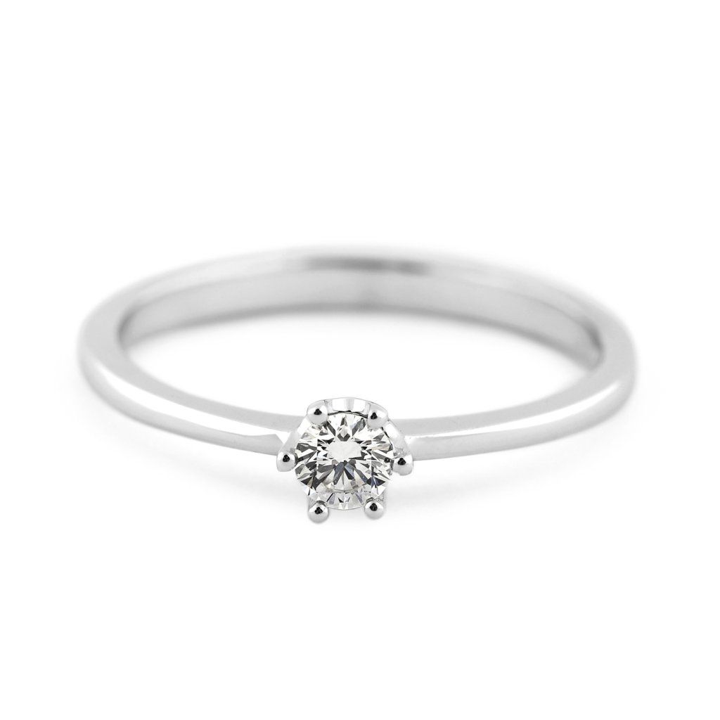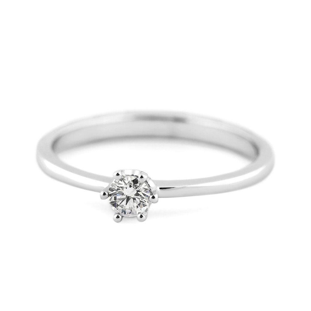 Elegantní zásnubní prsten z bílého zlata s přírodním diamantem v klasickém šestikrapnovém uchycení. Nadčasová volba pro ženy, které milují jemnou eleganci a skutečný diamantový třpyt.