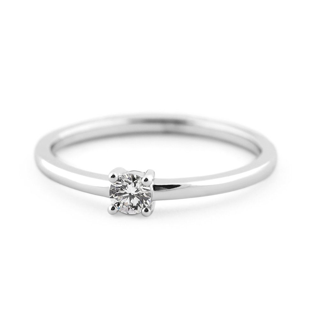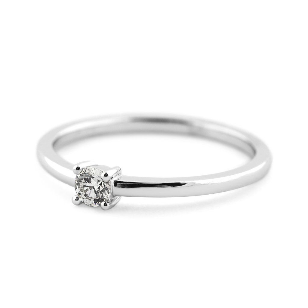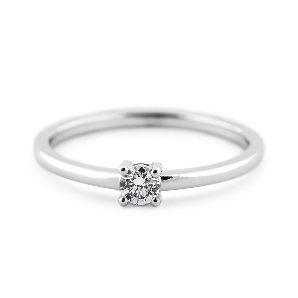 Elegantní zásnubní prsten z bílého zlata 585/1000 s přírodním diamantem o hmotnosti 0,148 ct, barvě G a čistotě VS. Nadčasový solitér, který vyniká svou jiskrou i precizním zpracováním.